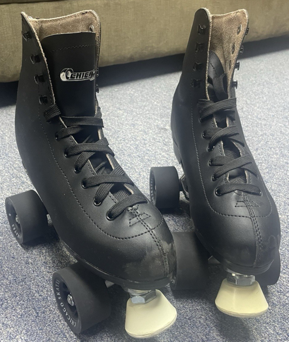 CHICAGO SKATES Deluxe Mens Rink Skate- Leather-Speed Lace Hooks- Adjustable-Sz 7