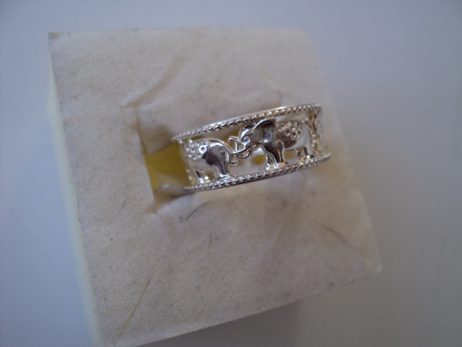 Elephant sterling silver ring 7mm wide size 6 DAD1022