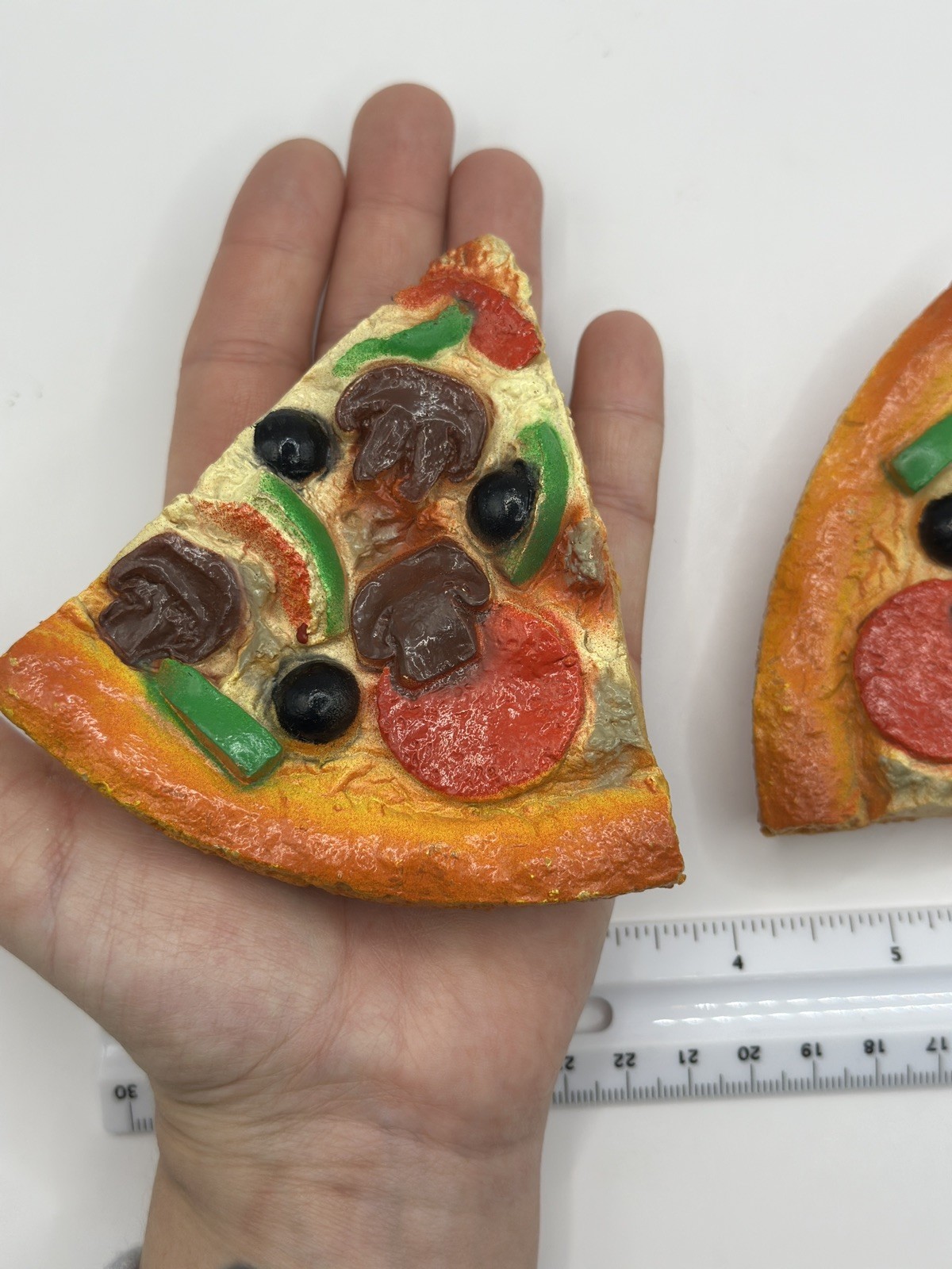 как выглядит MTC Prop Pretend 2 Slices PIZZA HUT Supreme Pan Pizza Toy 1987 Realistic фото