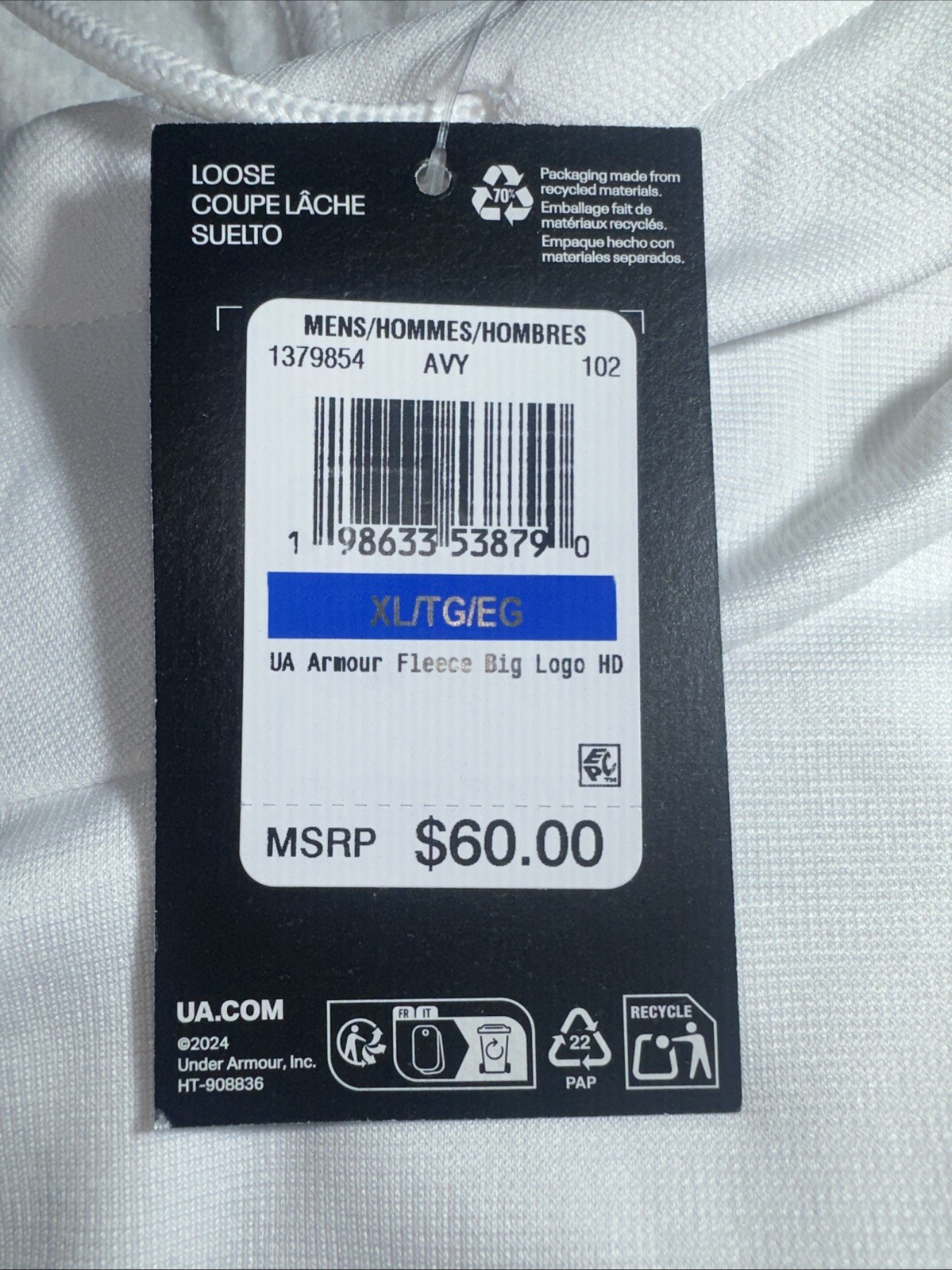 NEW Men's Under Armour White Blue Fleece Big Logo Hoodie Size XLarge MSRP 60.00