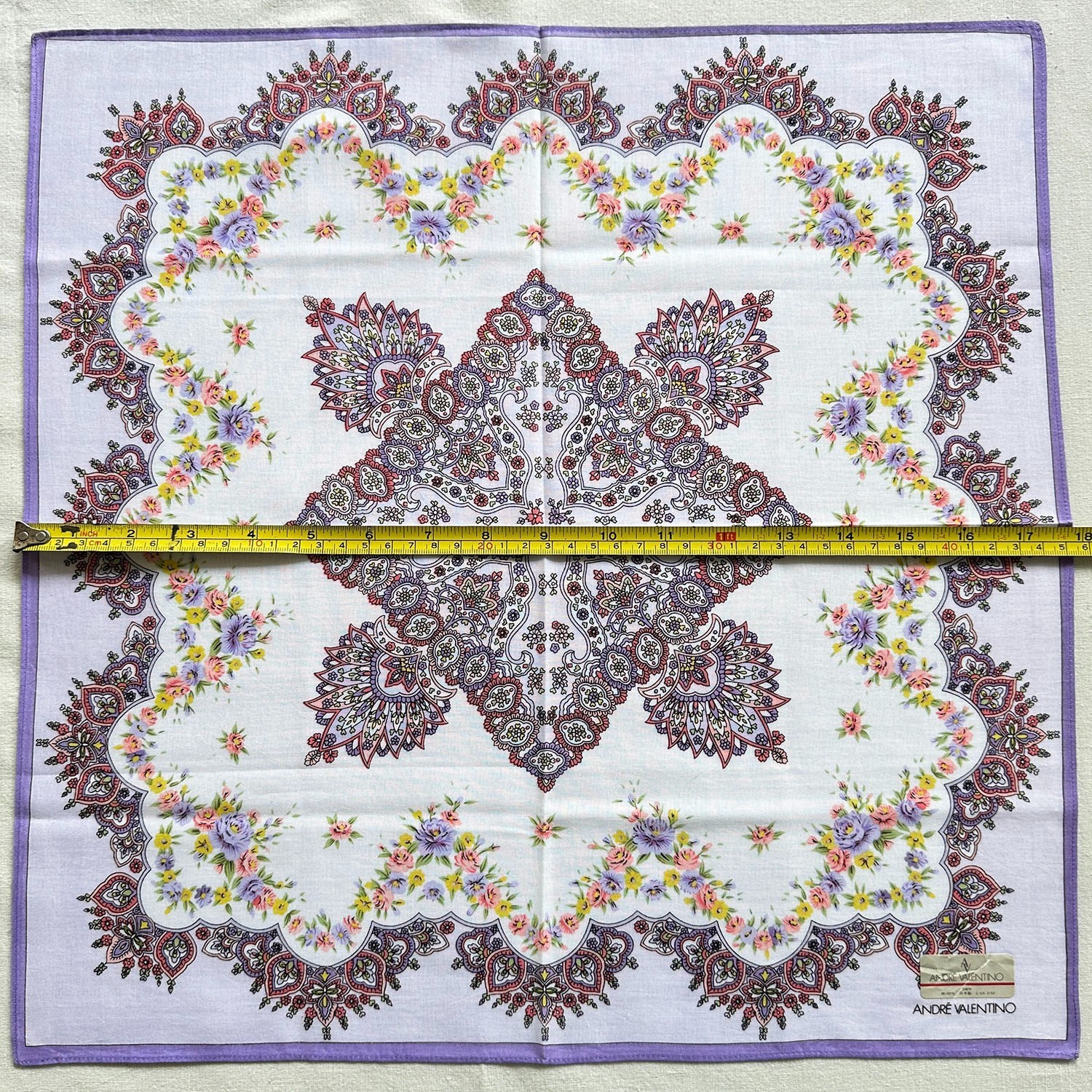 как выглядит VTG Handkerchief Cotton line Art Floral Paisley Flower Purple Pattern Hanky 18 фото