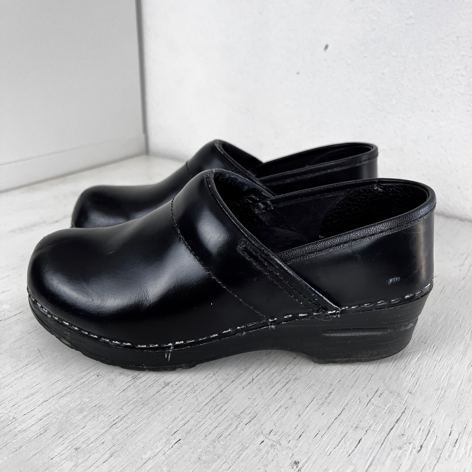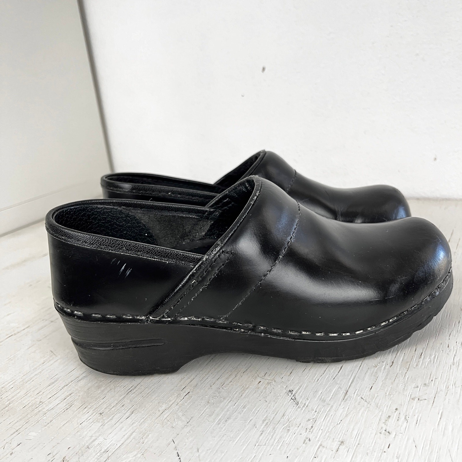 как выглядит Dansko professional shiny black slip on clogs size 36 US size 6.5 фото