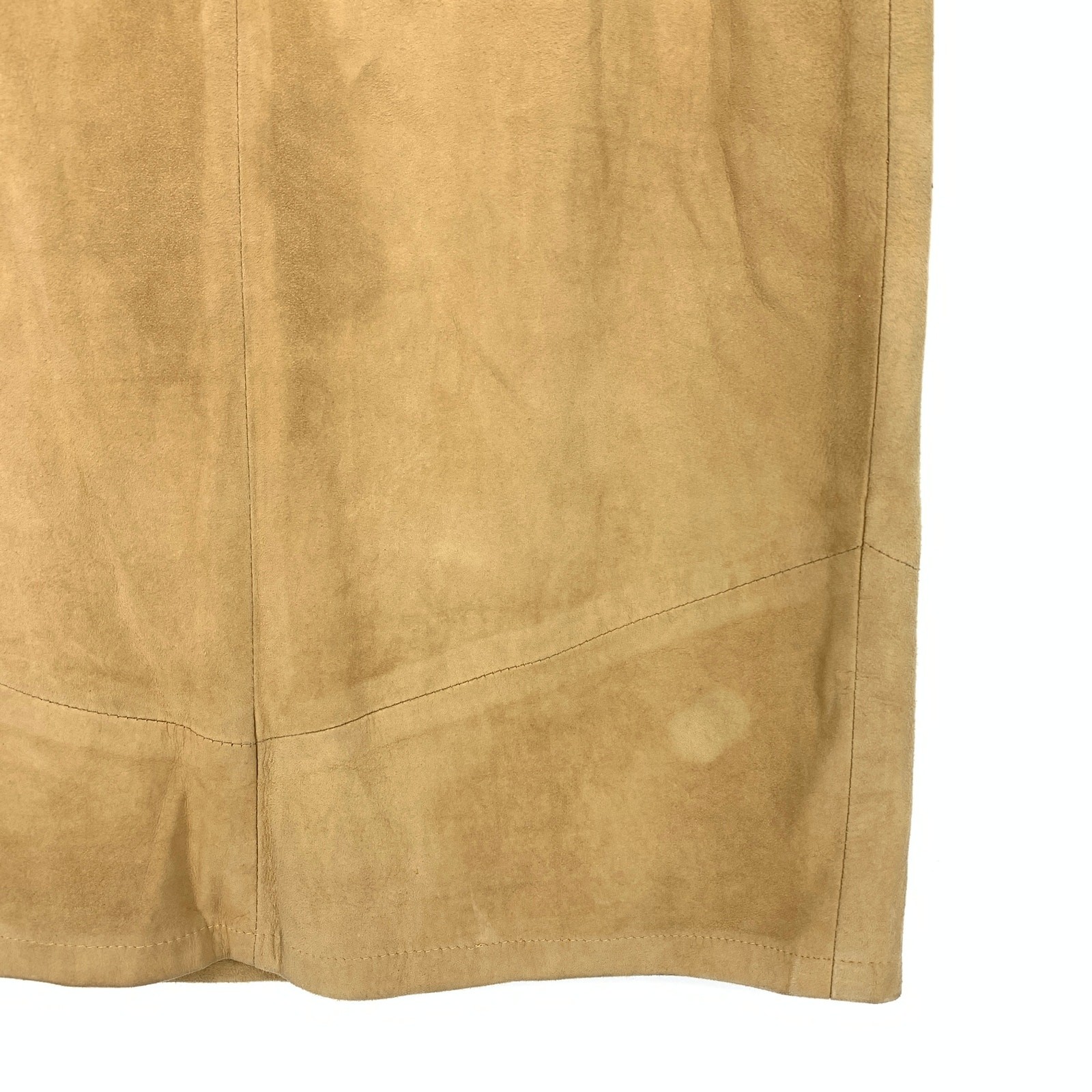 Vintage Vakko Suede Leather Skirt Womens Size 25 Tan Midi Length