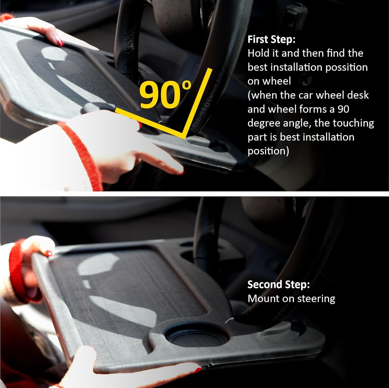 Car Steering Wheel Desk Tray Laptop Food Table Double Sided Portable