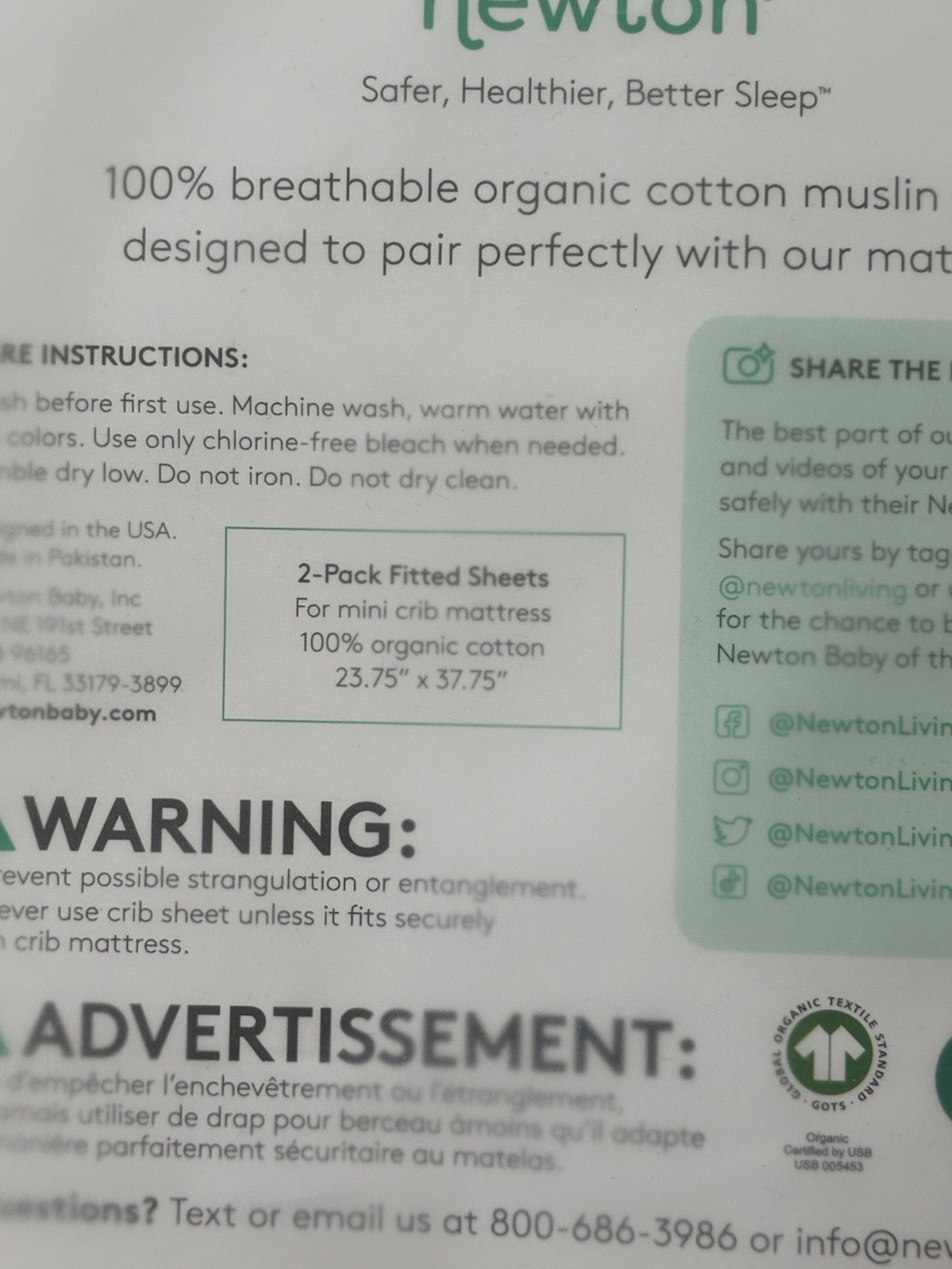 Newton Baby 2-pack Cotton Muslin Fitted Sheets For MINI CRIB