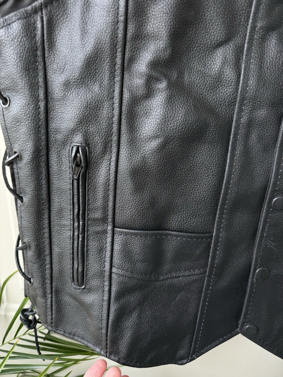 как выглядит HWK Motor Sports Mens Black Leather Vest Lace Up Sides Size Large Motorcycle фото