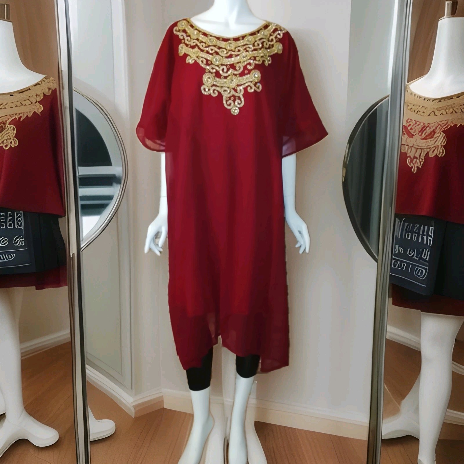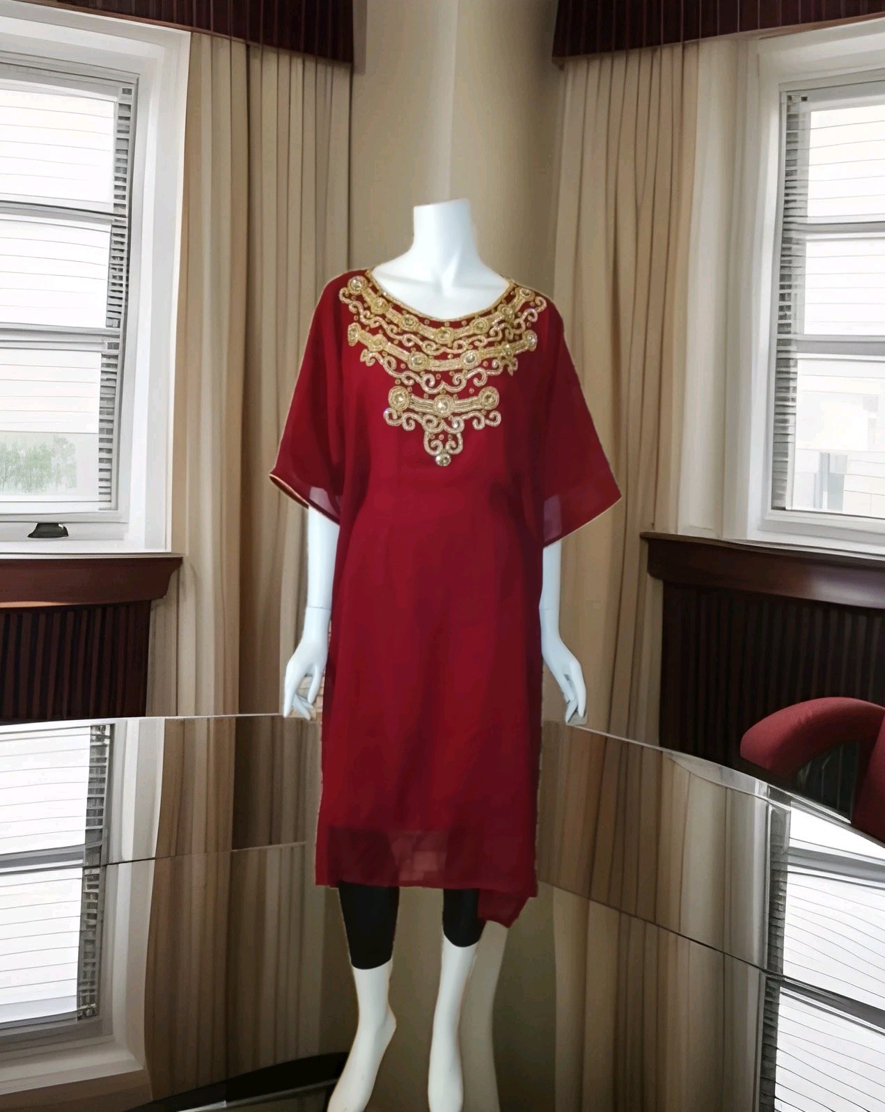 как выглядит Indian/Pakistani Red Patterned Full Kurta/Kimono One Size Fit All Size фото