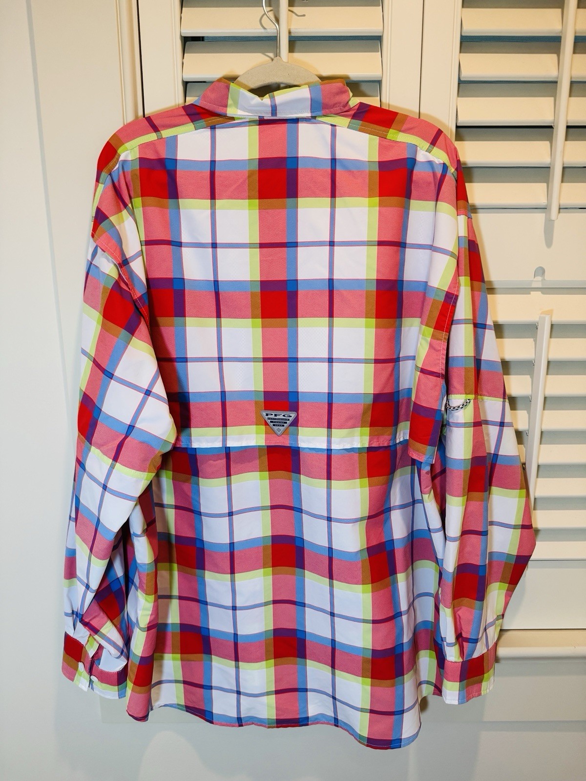 Columbia Super Bahama PFG Long Sleeve Plaid Fishing Shirt Mens XL EUC