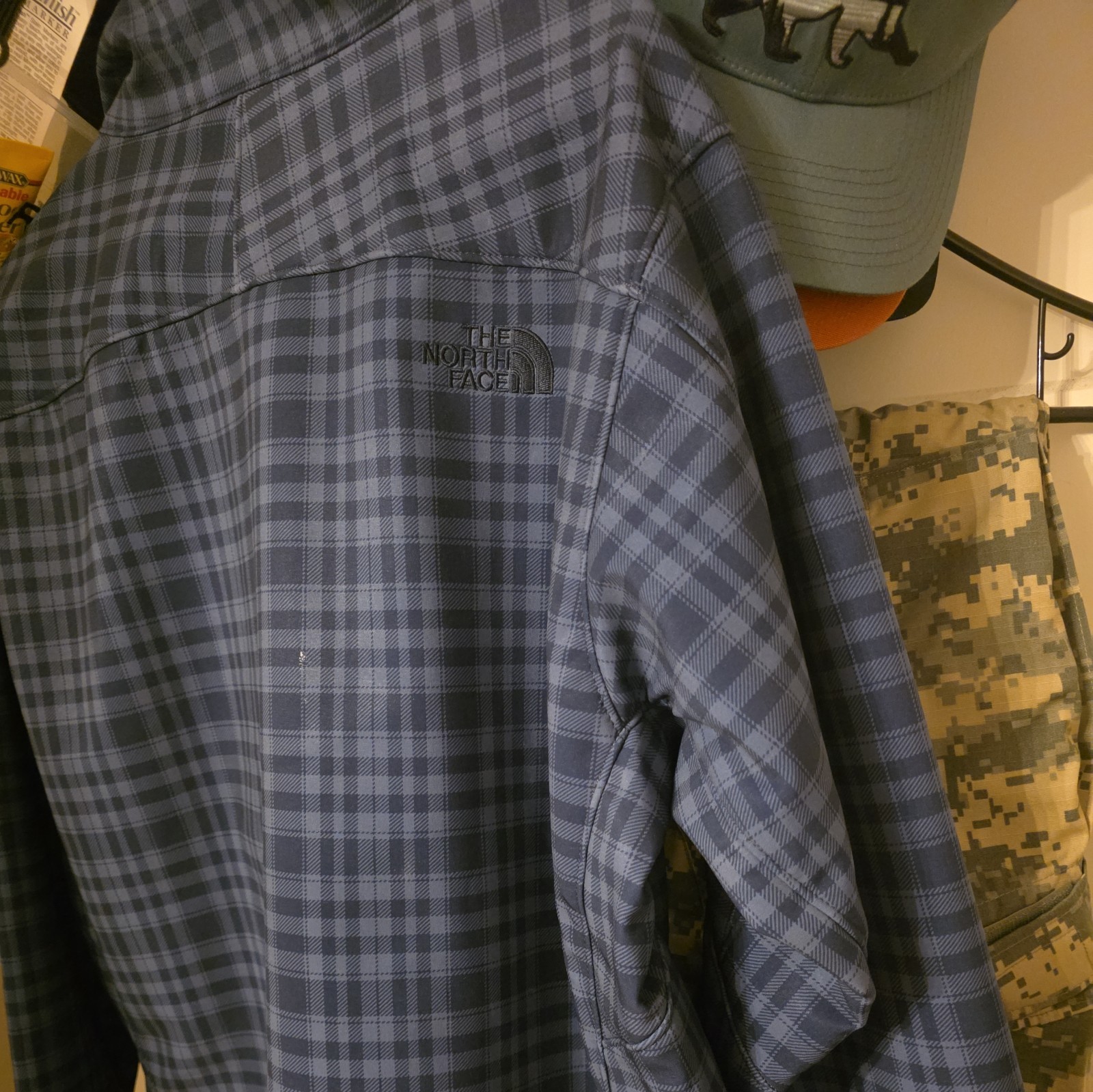 как выглядит New Mens The North Face Black Apex Bionic Softshell Jacket plaid ,blue фото