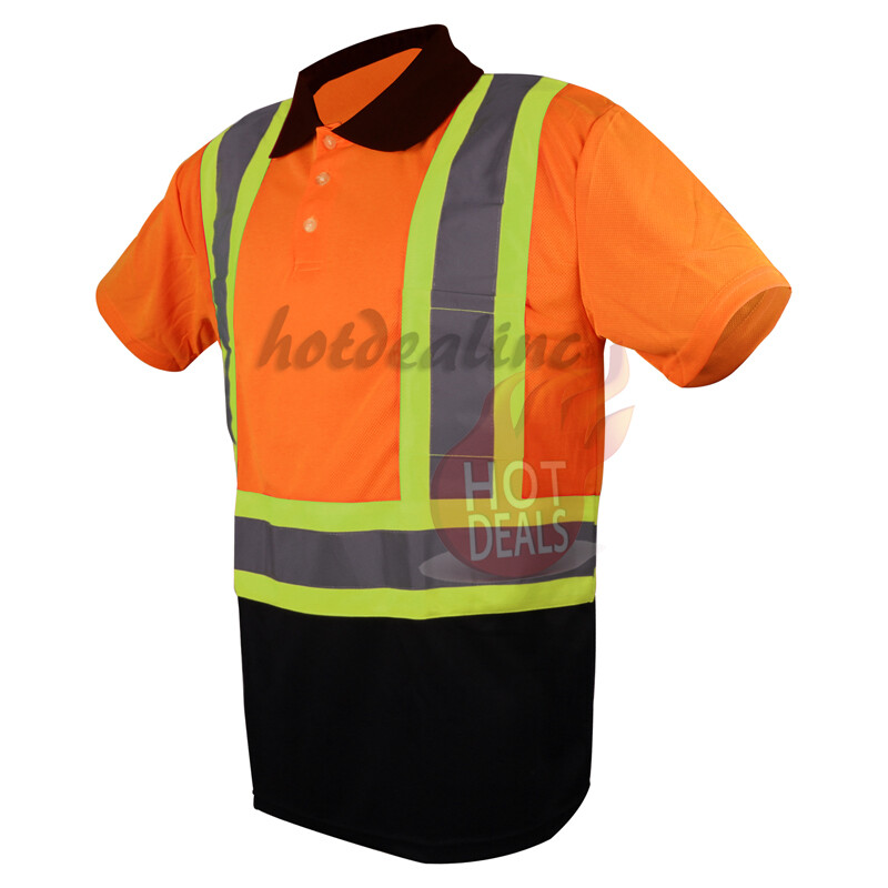 Work Safety Hi Vis Polo Short Sleeve Black High Visibility Reflect Stripe Tape