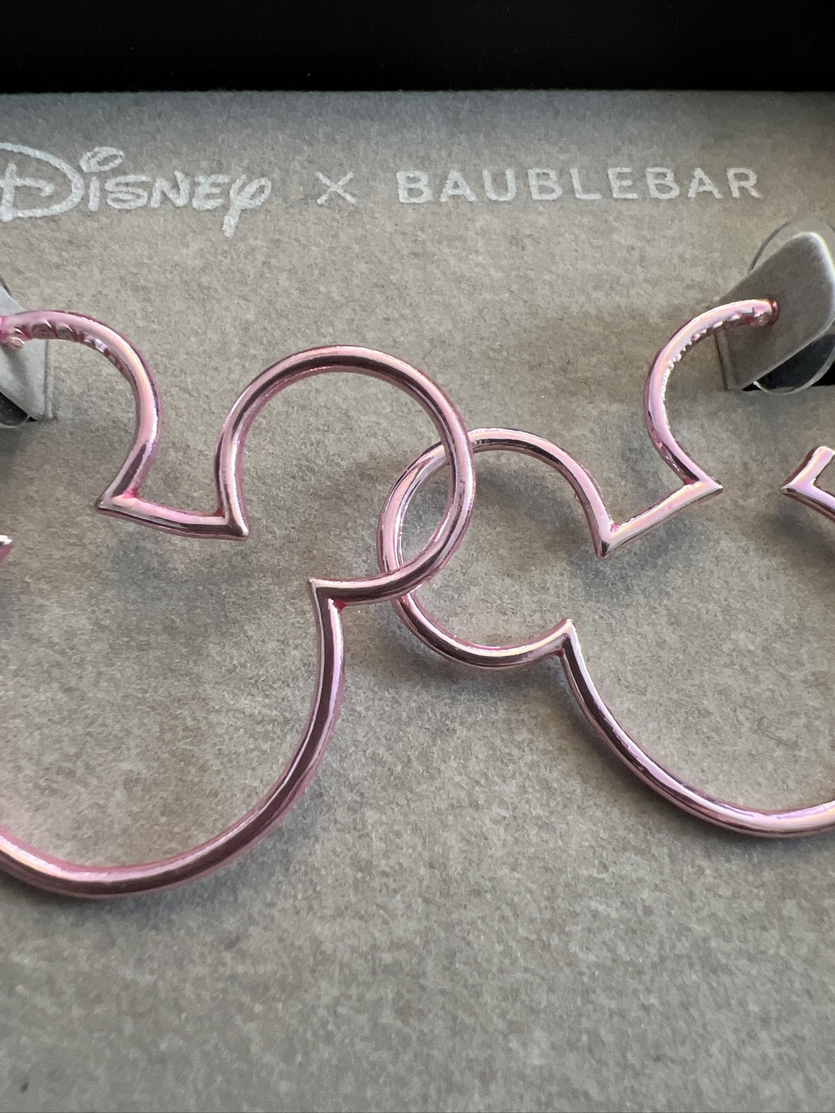 Disney X BaubleBar Mickey Mouse Silhouette Head Earrings Hoop Outline Pink NEW