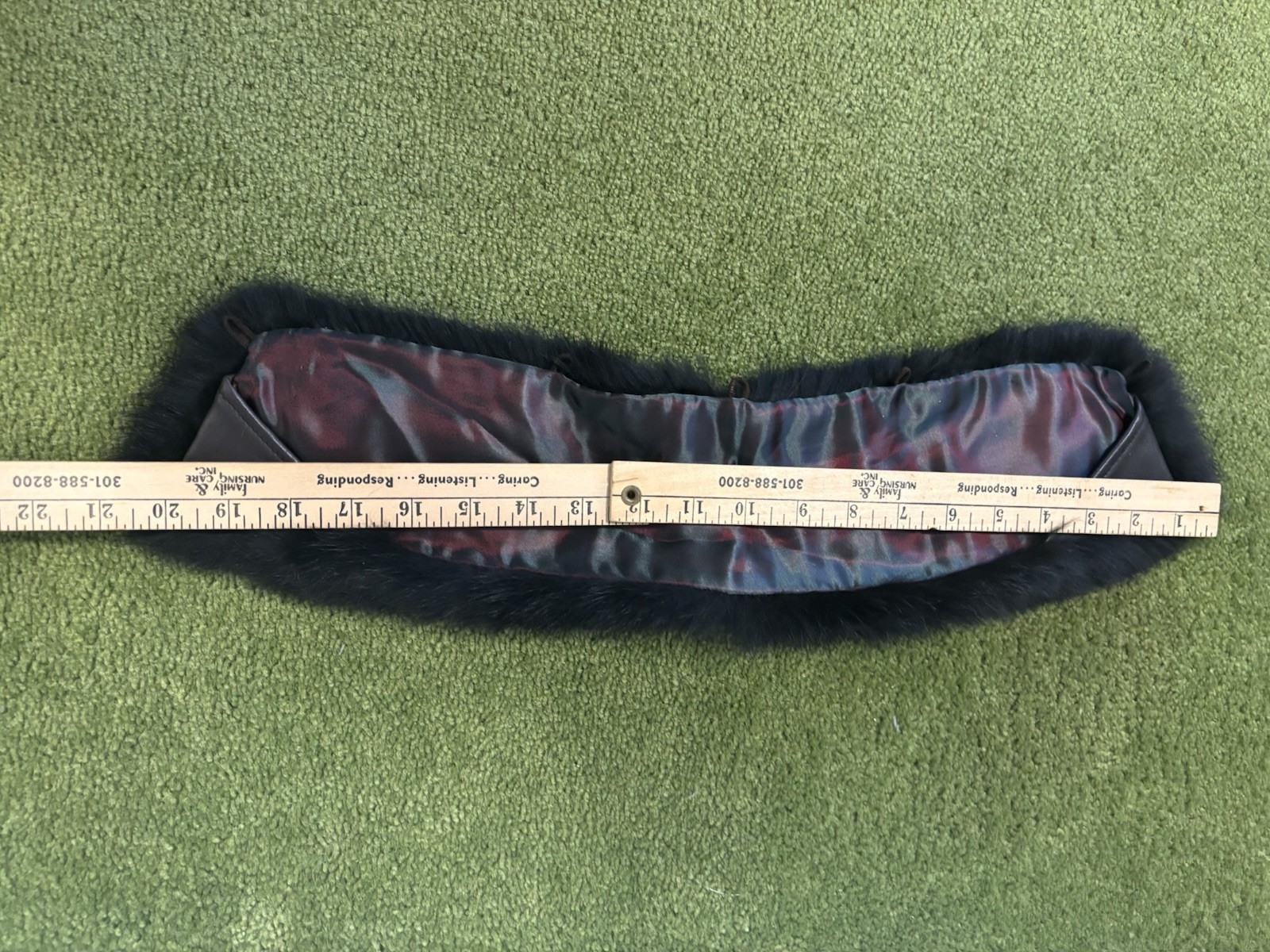 как выглядит DARKEST BROWN BLACK GENUINE FOX ATTACHABLE FUR COLLAR USA Lined , 21" x 5" T фото