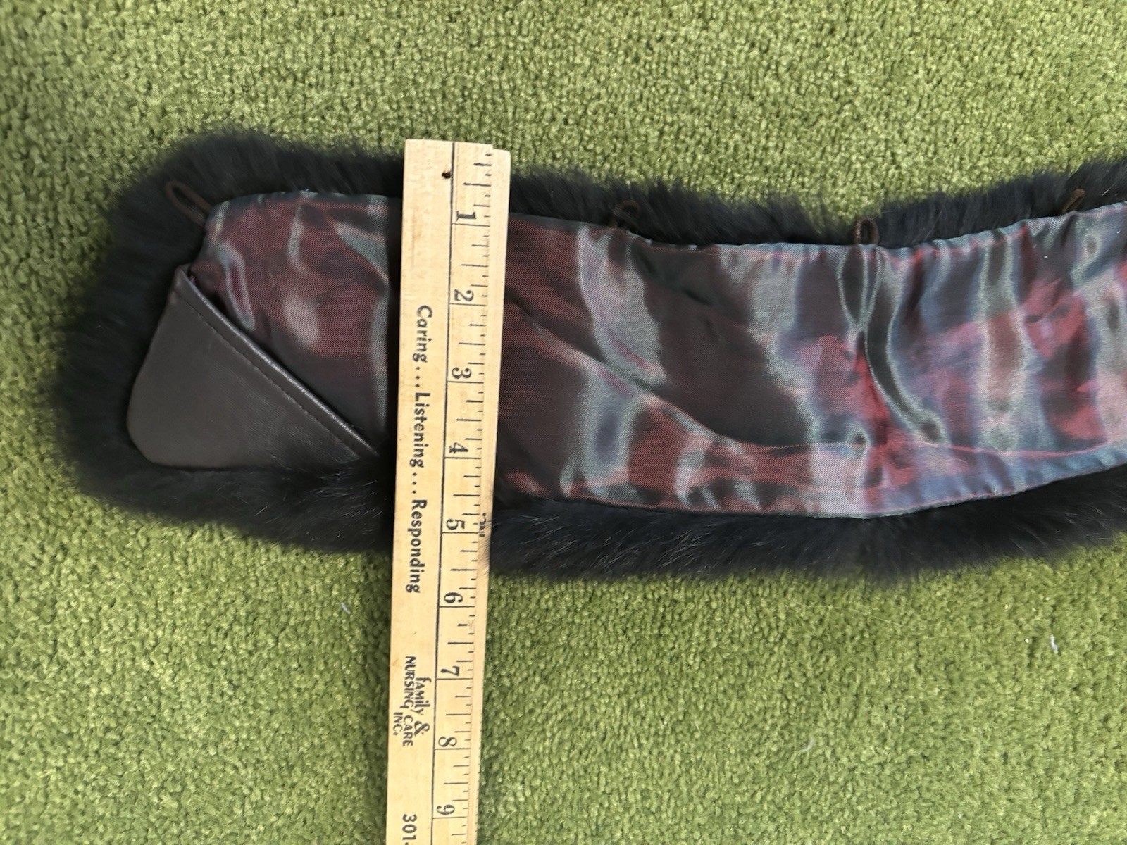 DARKEST BROWN BLACK GENUINE FOX ATTACHABLE FUR COLLAR USA Lined , 21 x 5 T
