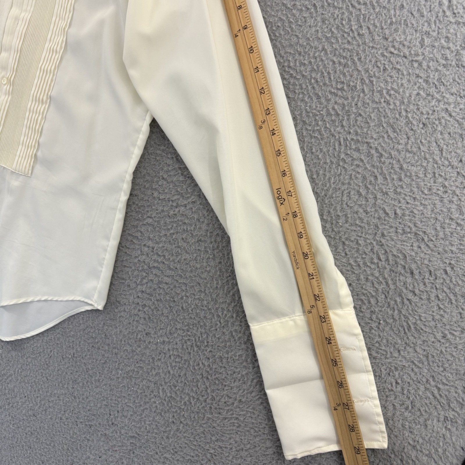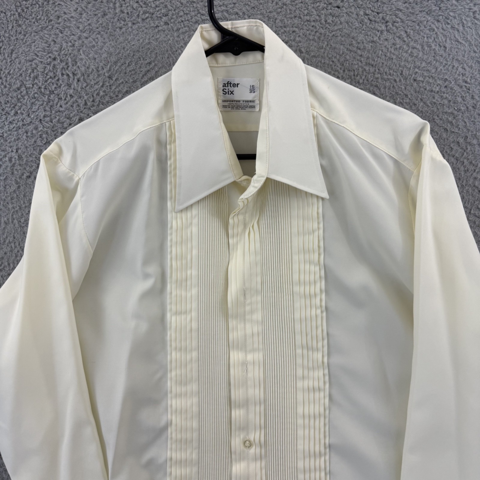 как выглядит Vintage After Six Tuxedo Shirt Men Large Ivory Pleated Poplin French Cuff Formal фото