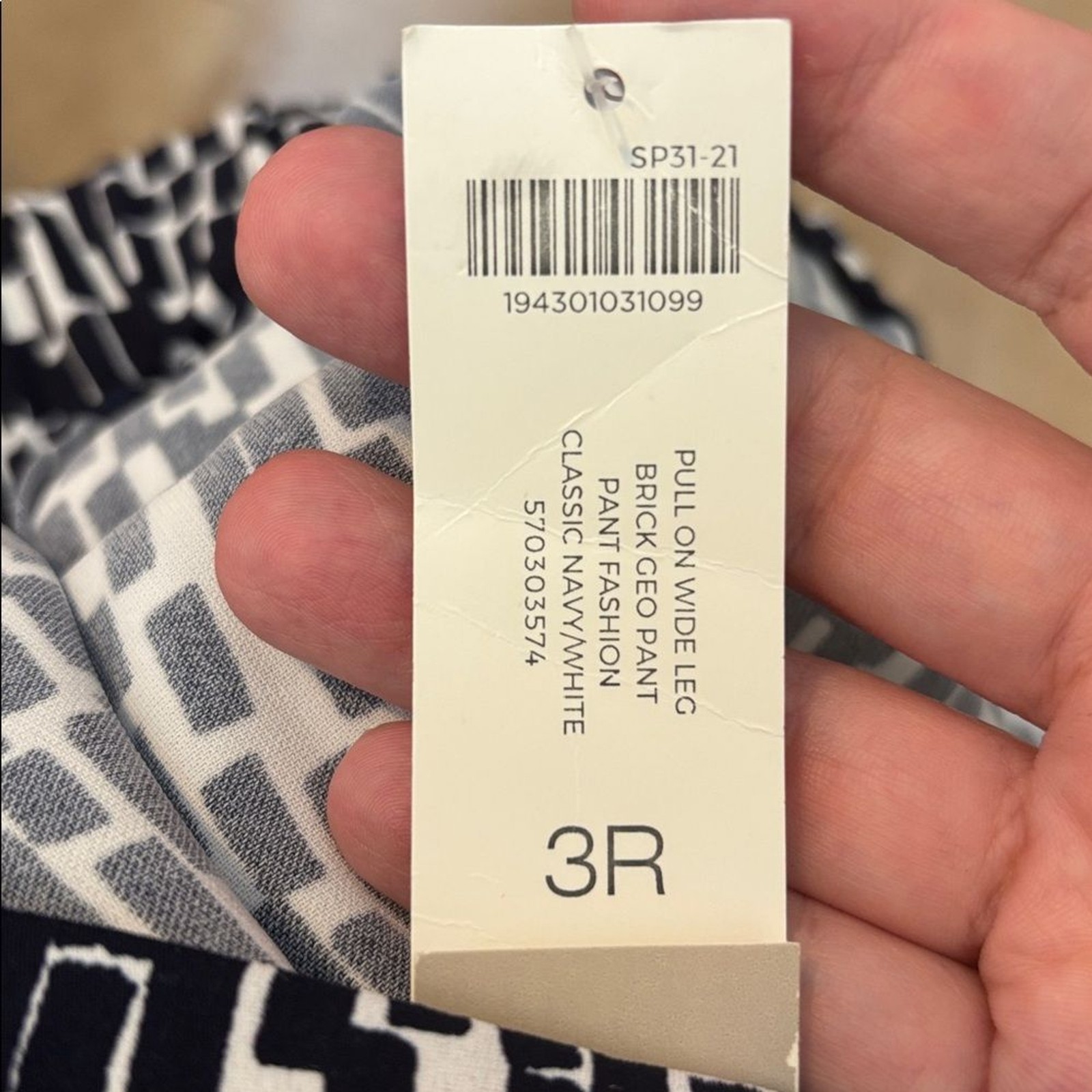 как выглядит Chicos navy and White Wide Leg pull on Pants nwt size 3 16 фото