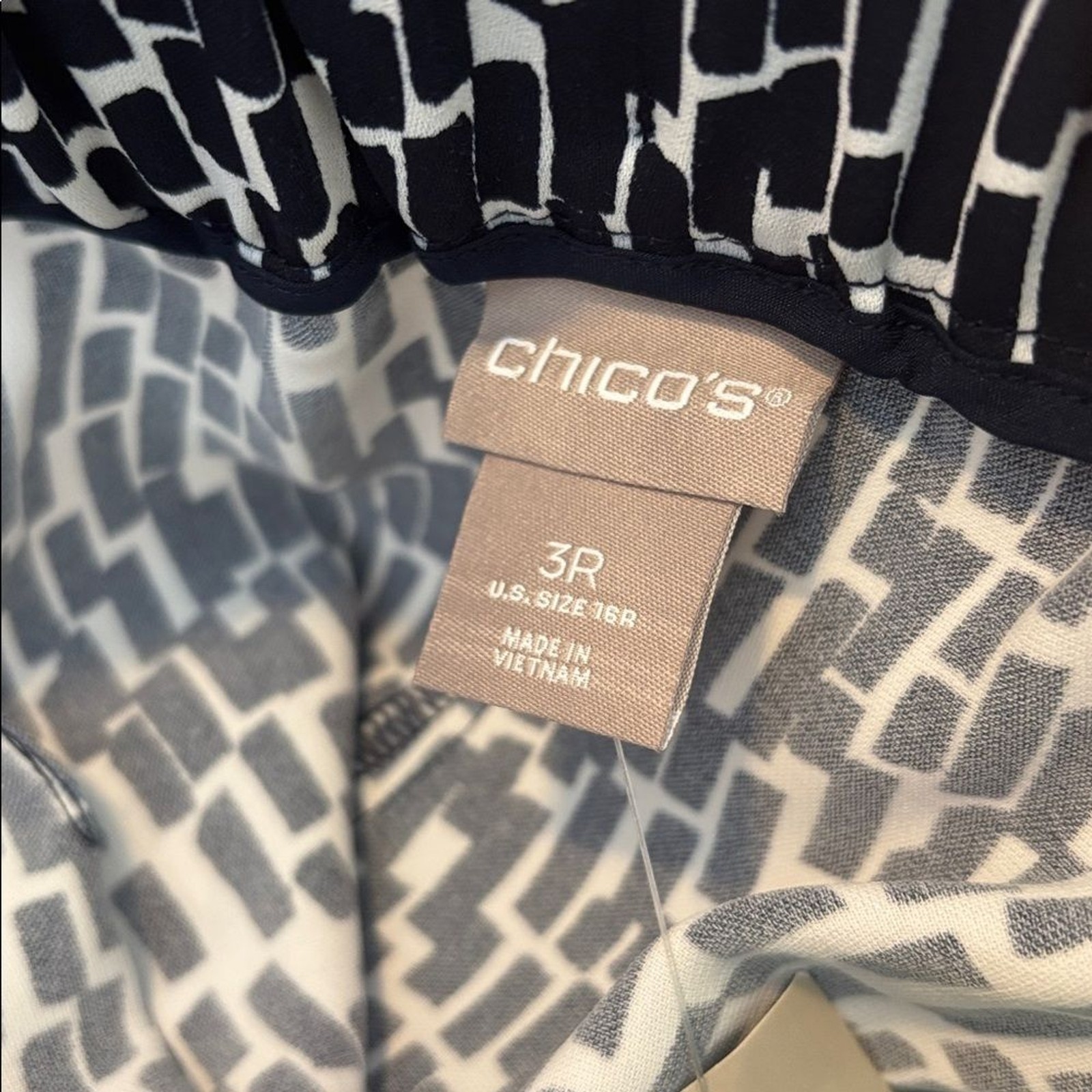 Chico's navy and White Wide Leg pull on Pants nwt size 3 16