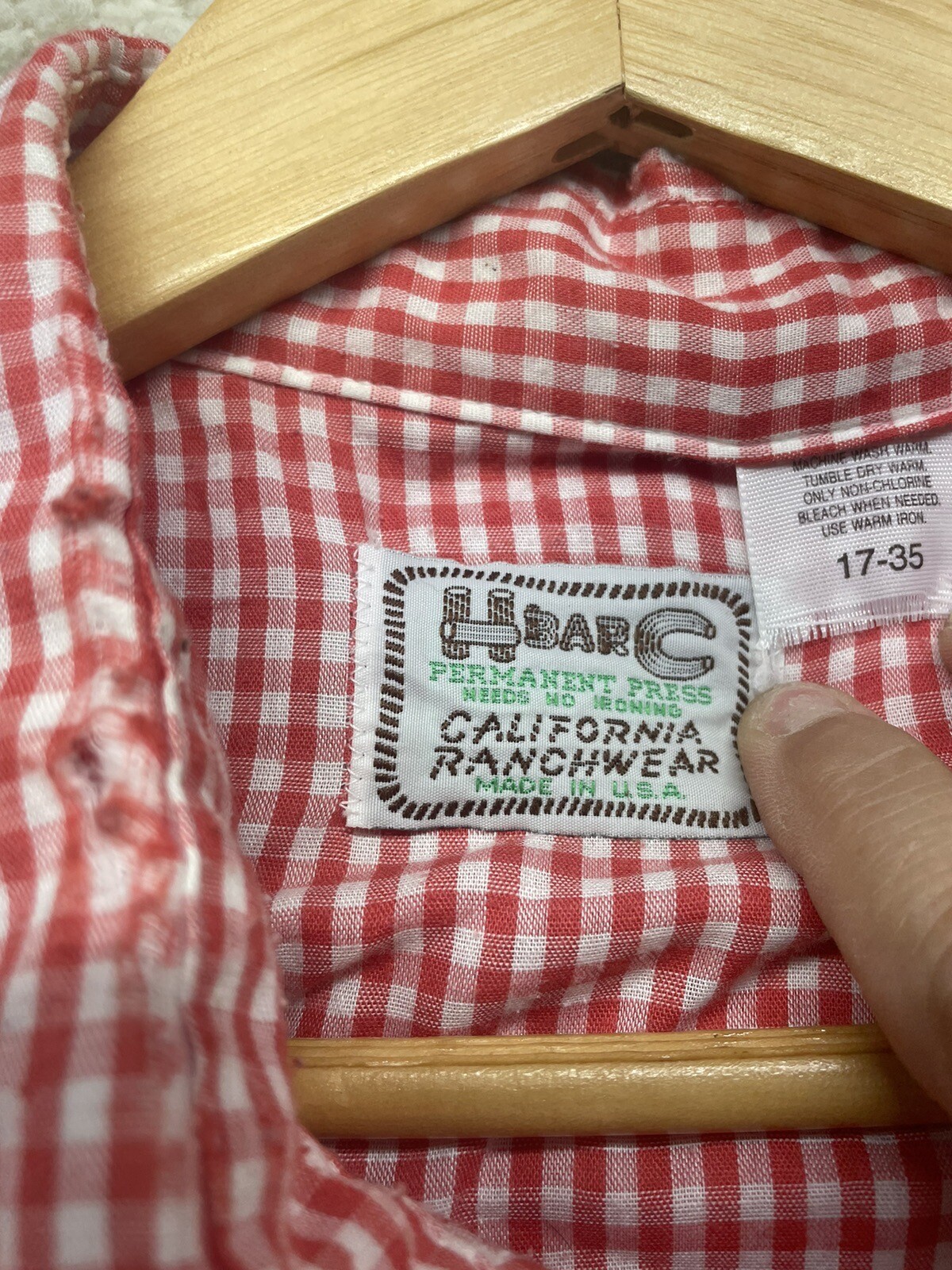 H Bar C California Ranchwear 60s Western Pearl Snap Shirt 17 - 35 USA Check