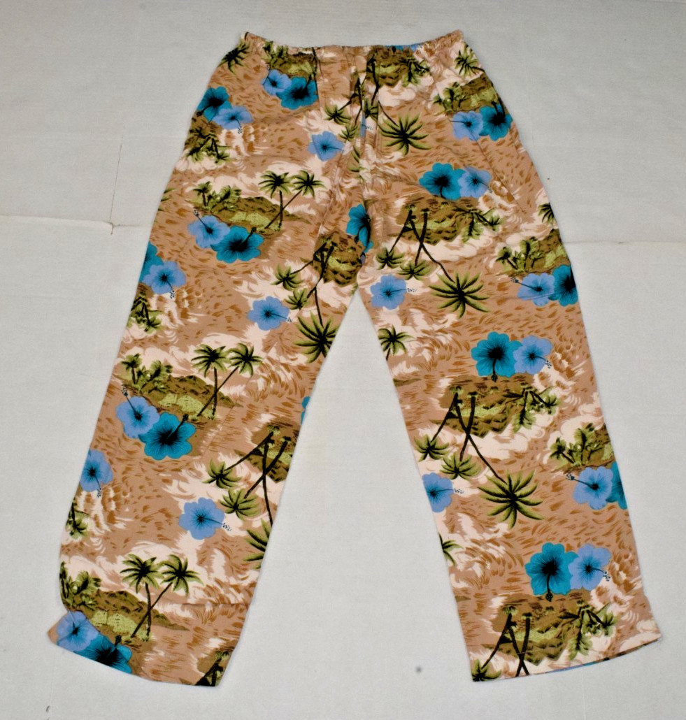 Vintage Pants White Stag Size M 90s Vallejo Tan Tropical Floral Pure Rayon NWOT
