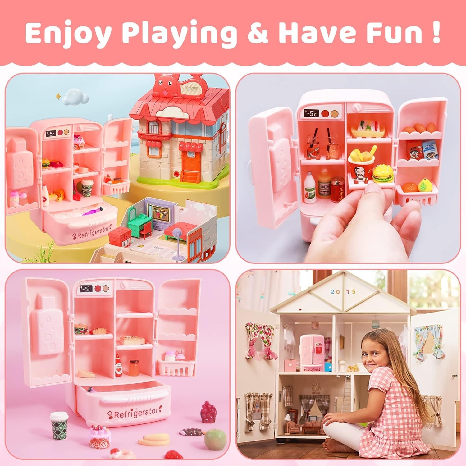 Set Includes: Accessories, Mini Dollhouse Refrigerator, Mini Food Toys, Mini Drinks