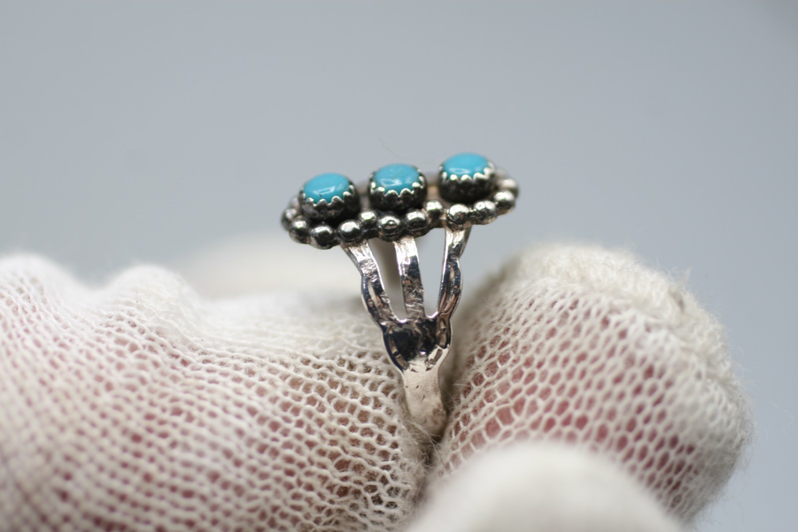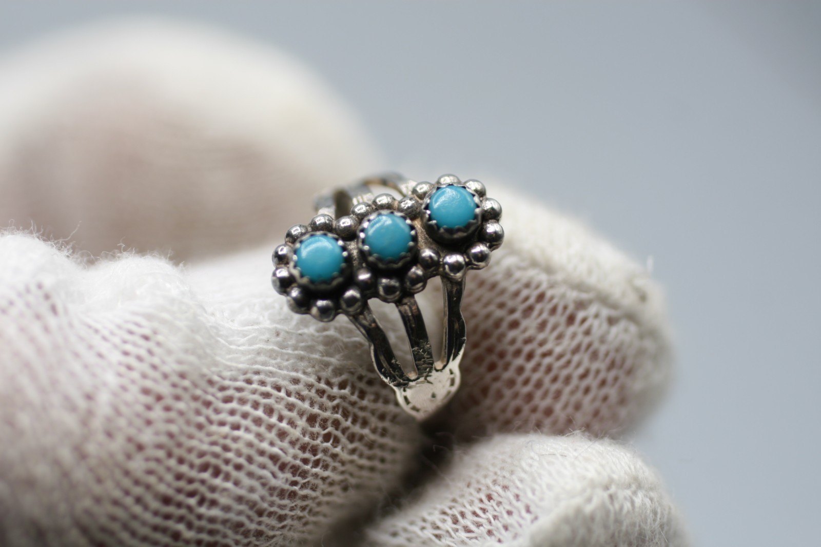 как выглядит Native American Sterling Silver Turquoise Gemstone Ring Size 4 фото