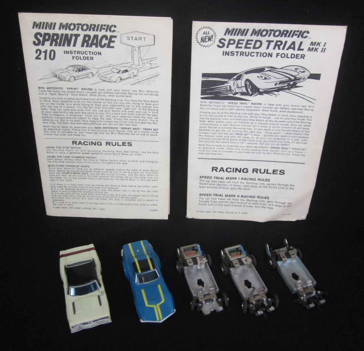 Vintage 1968 Ideal Mini Motorific Slot Car Sprint Race 210, Speed Trial MKI MKII