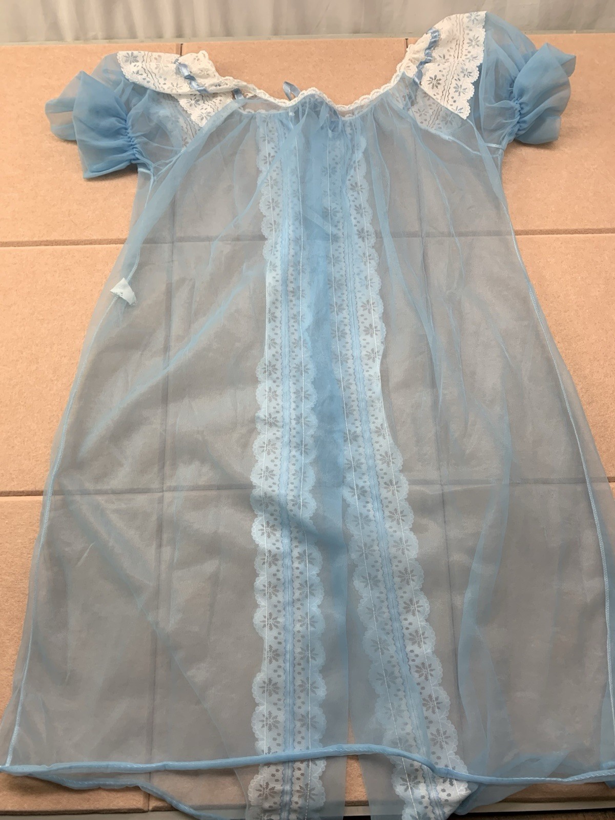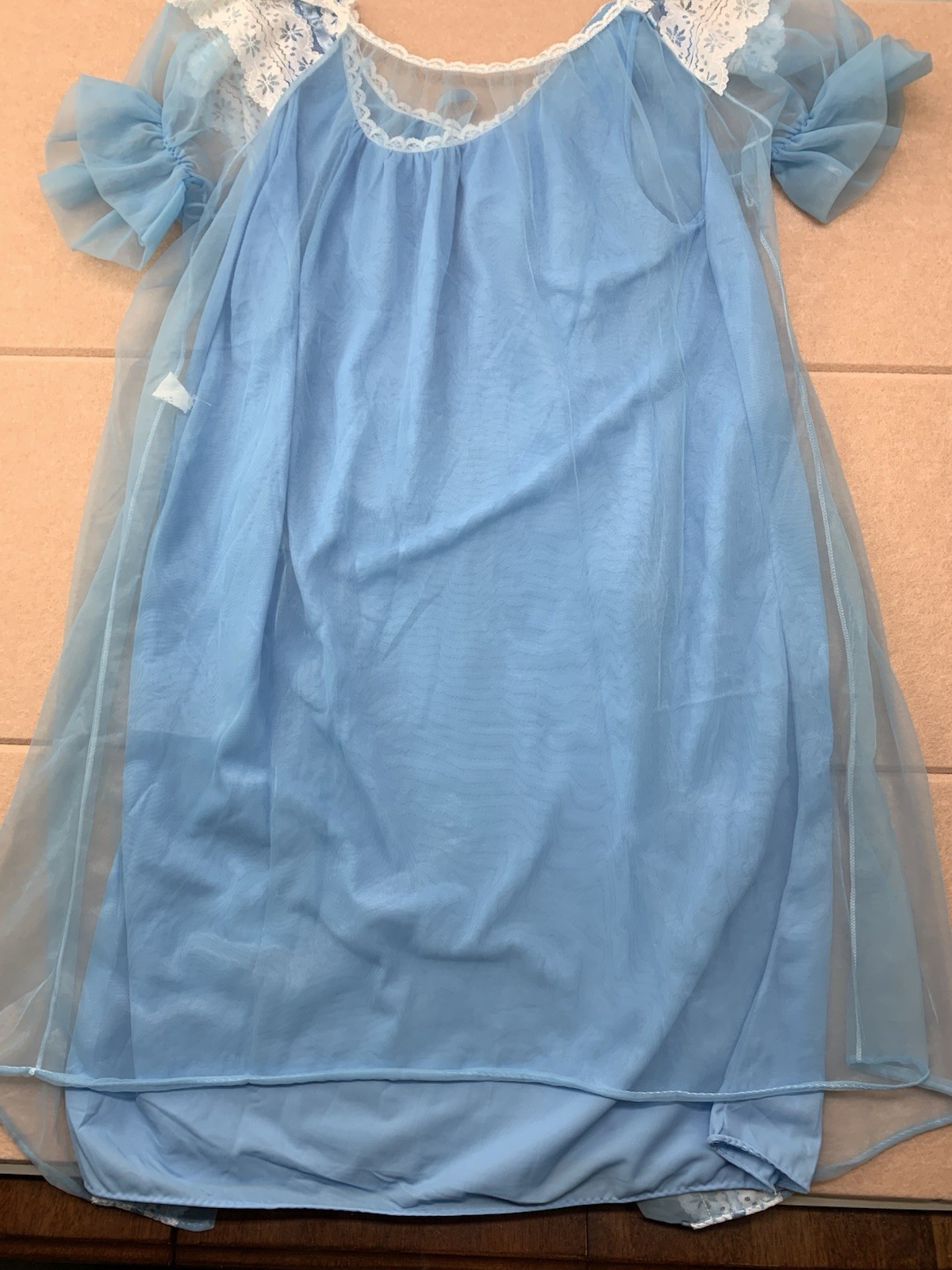 как выглядит VINTAGE Womens 2pc Lingerie Set Sheer Gown Nightie Robe Sleep Intimates Blue USA фото