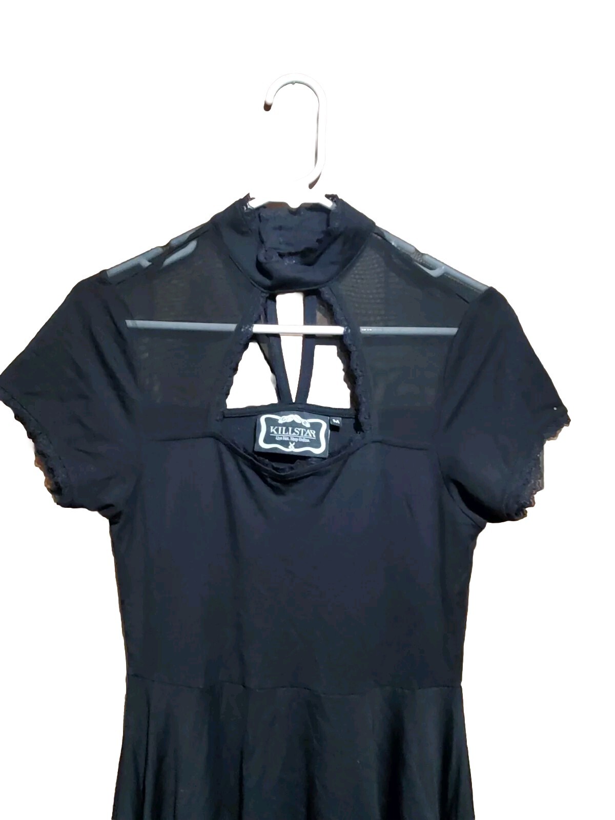 Killstar Black Sheer Short Sleeve Mini Goth Grunge Wednesday Punk Retro Sz M