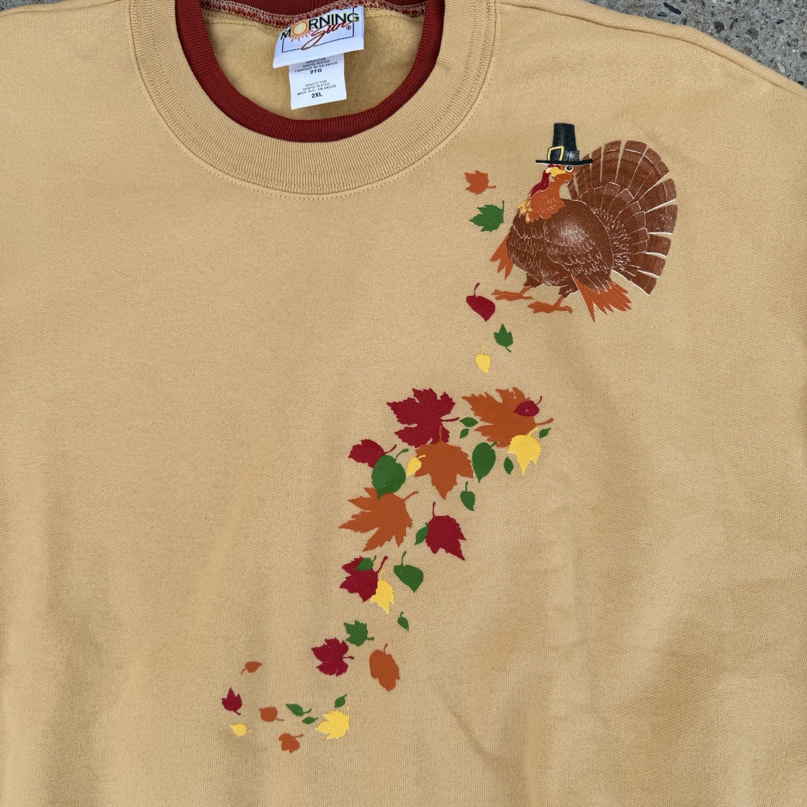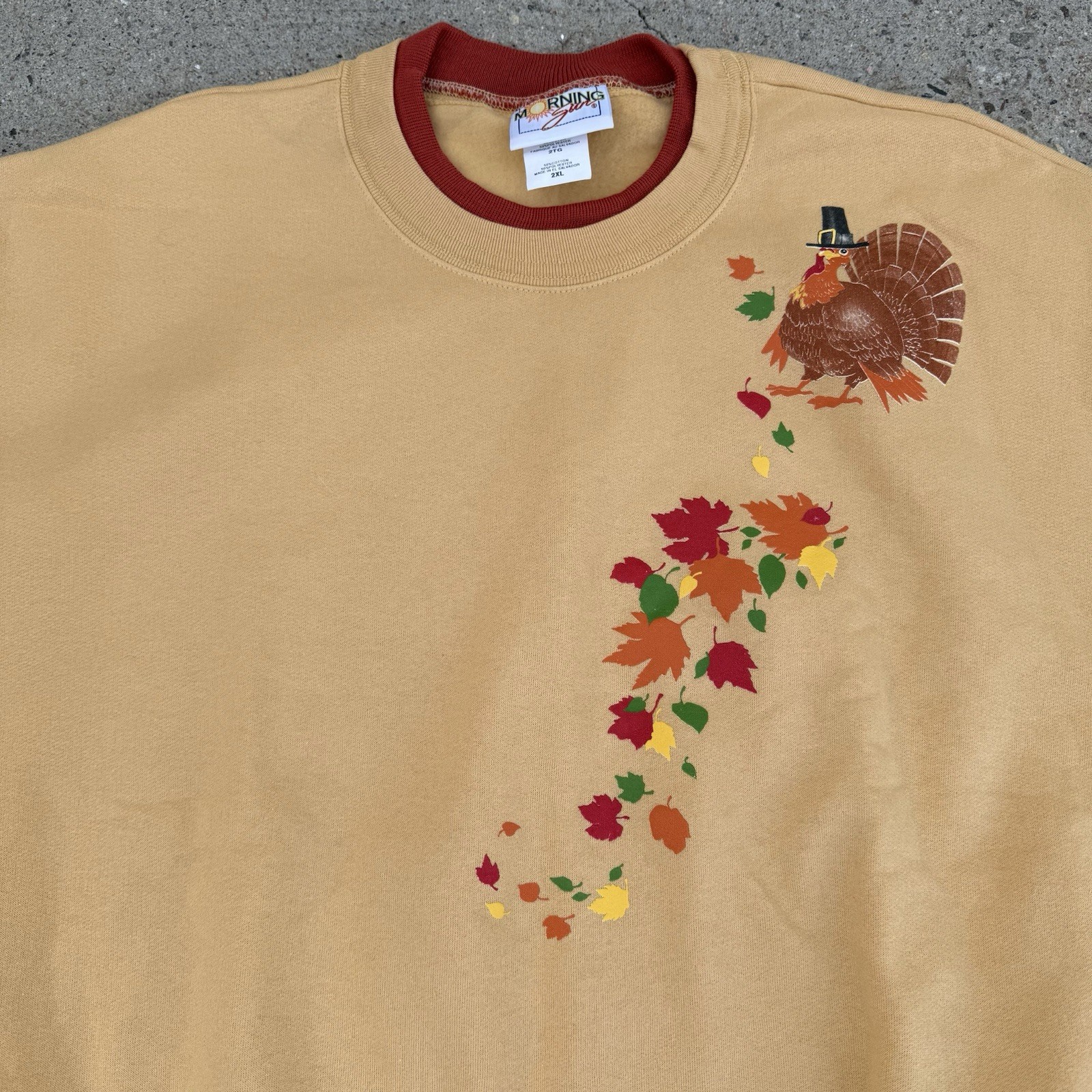 Vintage Morning Sun Thanksgiving Turkey Fall Sweatshirt Crewneck Orange Sz 2XL