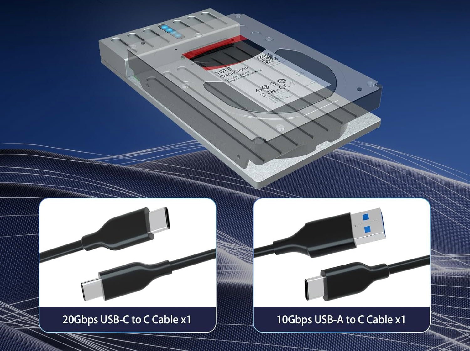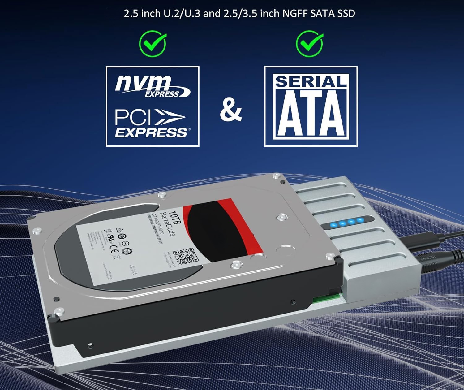 USB-C 20Gbps Flat Docking Station - 2.5/3.5 - U.2/U.3 - SATA SSD/HDD - Cables