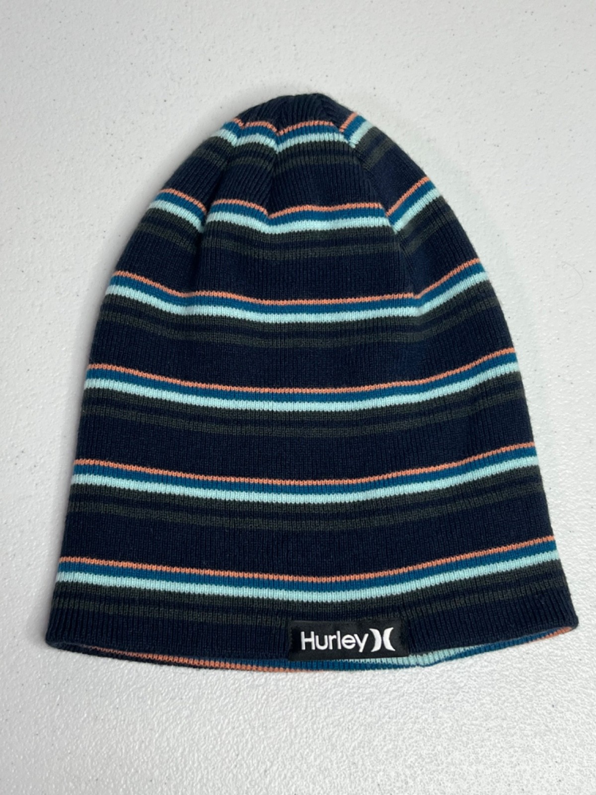 Hurley Cuff Beanie Hat Youth Fits Adult Blue Striped