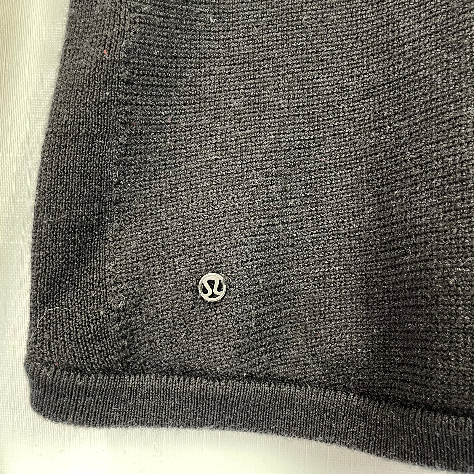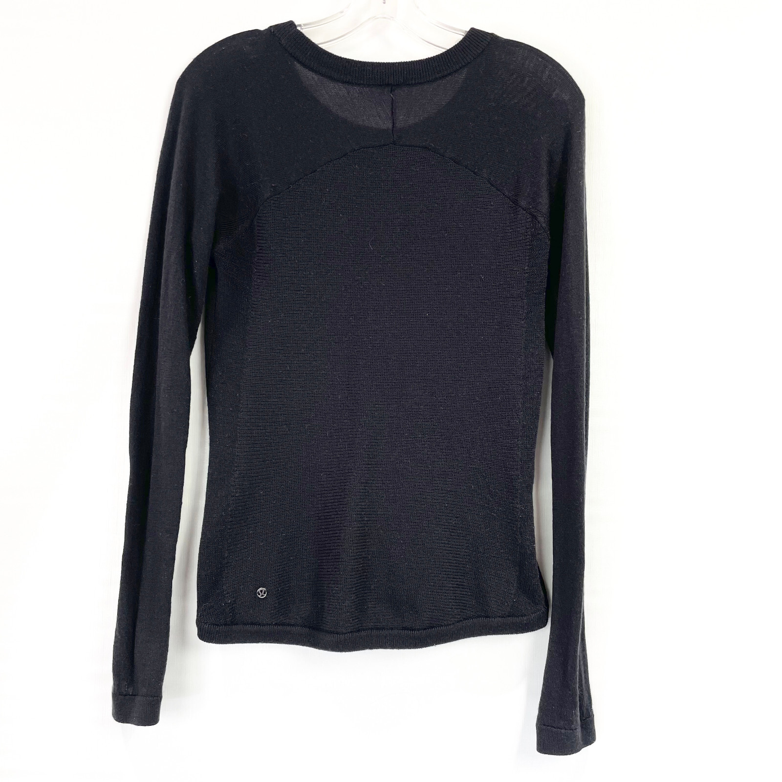 как выглядит Lululemon Womens 4 Sweater Sit in Lotus Black Merino Wool Long Sleeve Pullover фото