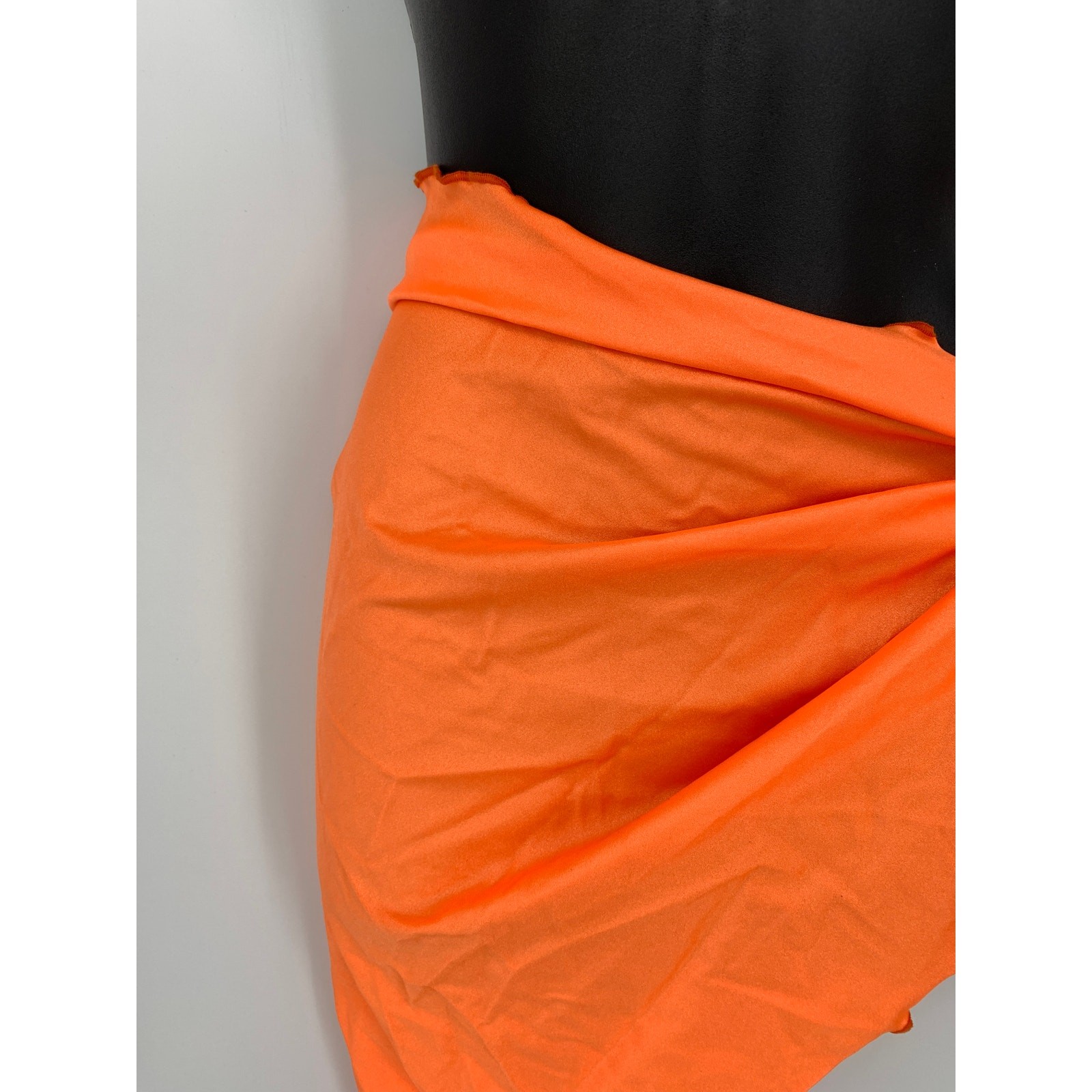 Vintage 90s Sarong Wrap Skirt One Size Swim Coverup Neon Orange