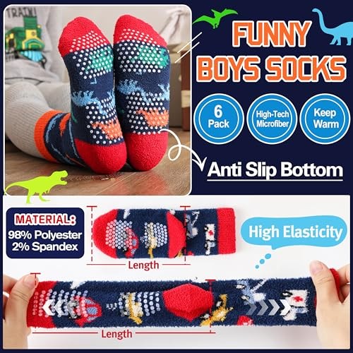 Kids Boys Toddlers Fuzzy Slipper Socks with Grips Non 8-12 Years Animal Cars