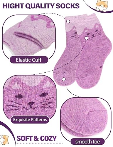 Kids Merino Wool Socks for Toddlers Boys Girls Warm Thermal 1-3T Cat Face