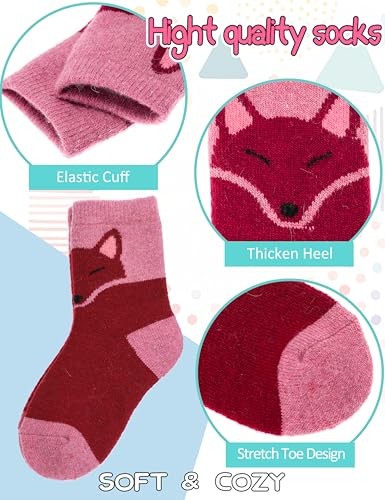 Kids Merino Wool Socks for Toddlers Boys Girls Warm Thermal 8-12 Years Animals