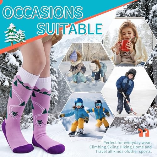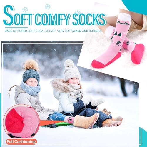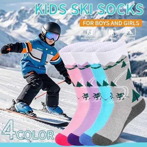 Kids Ski Socks Thermal Winter Warm Thick 7-12 Years 03 Light Gray Sky Blue