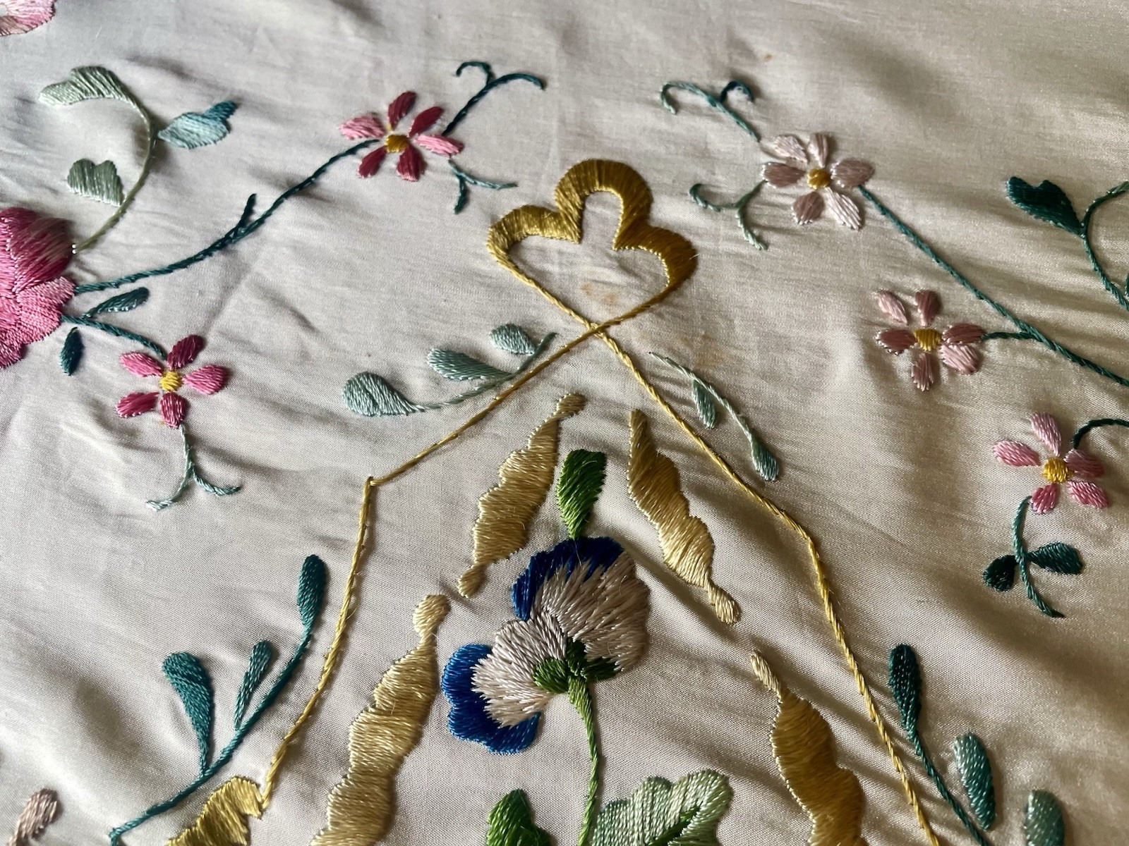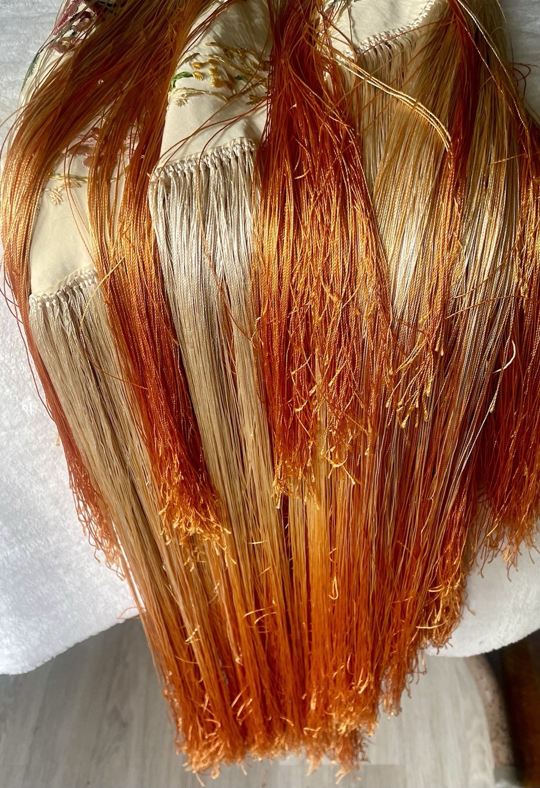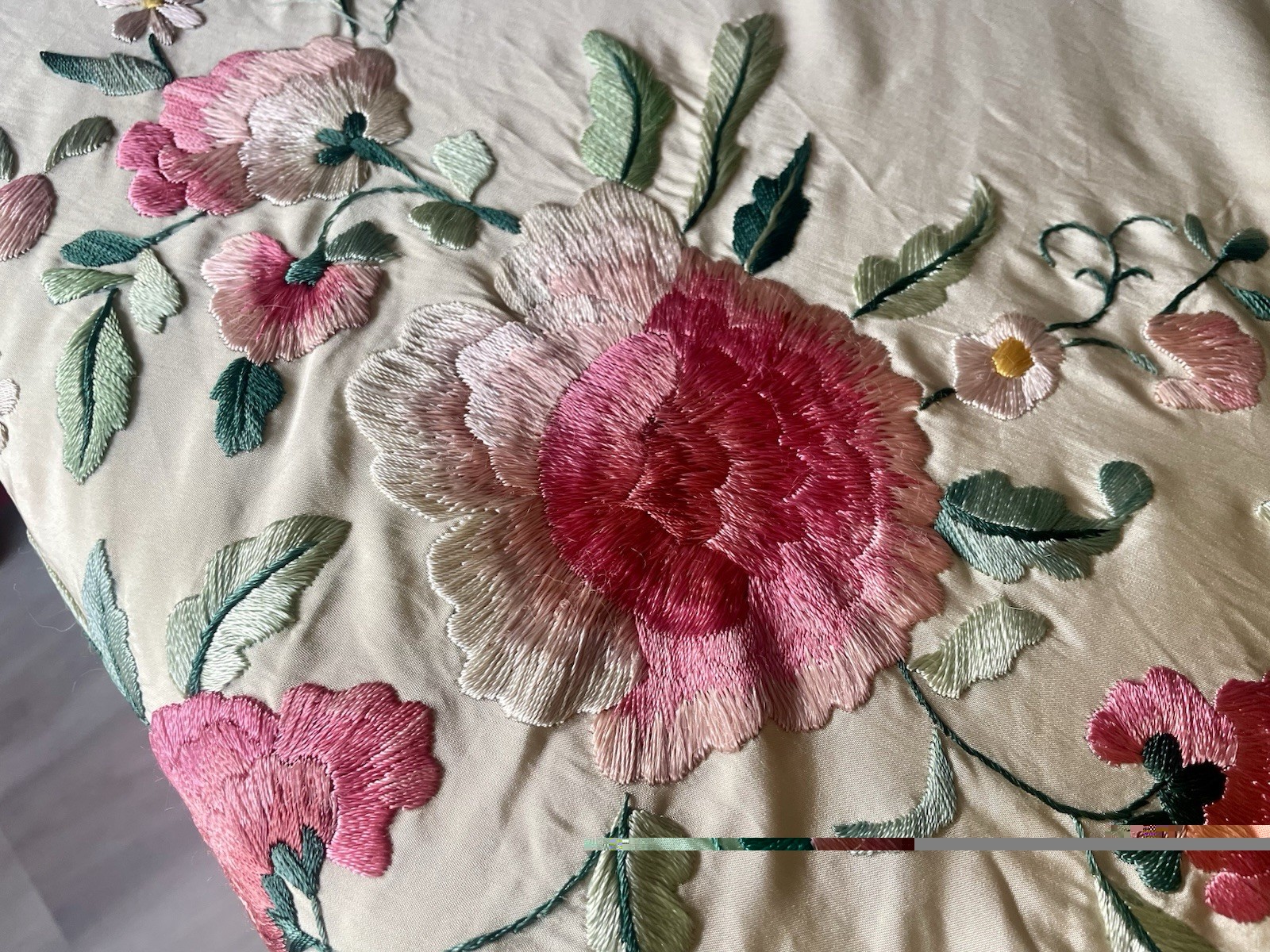 как выглядит Antique 1920s Chinese Embroidered Silk Piano Shawl w/Orange Ombre 21" Fringe фото