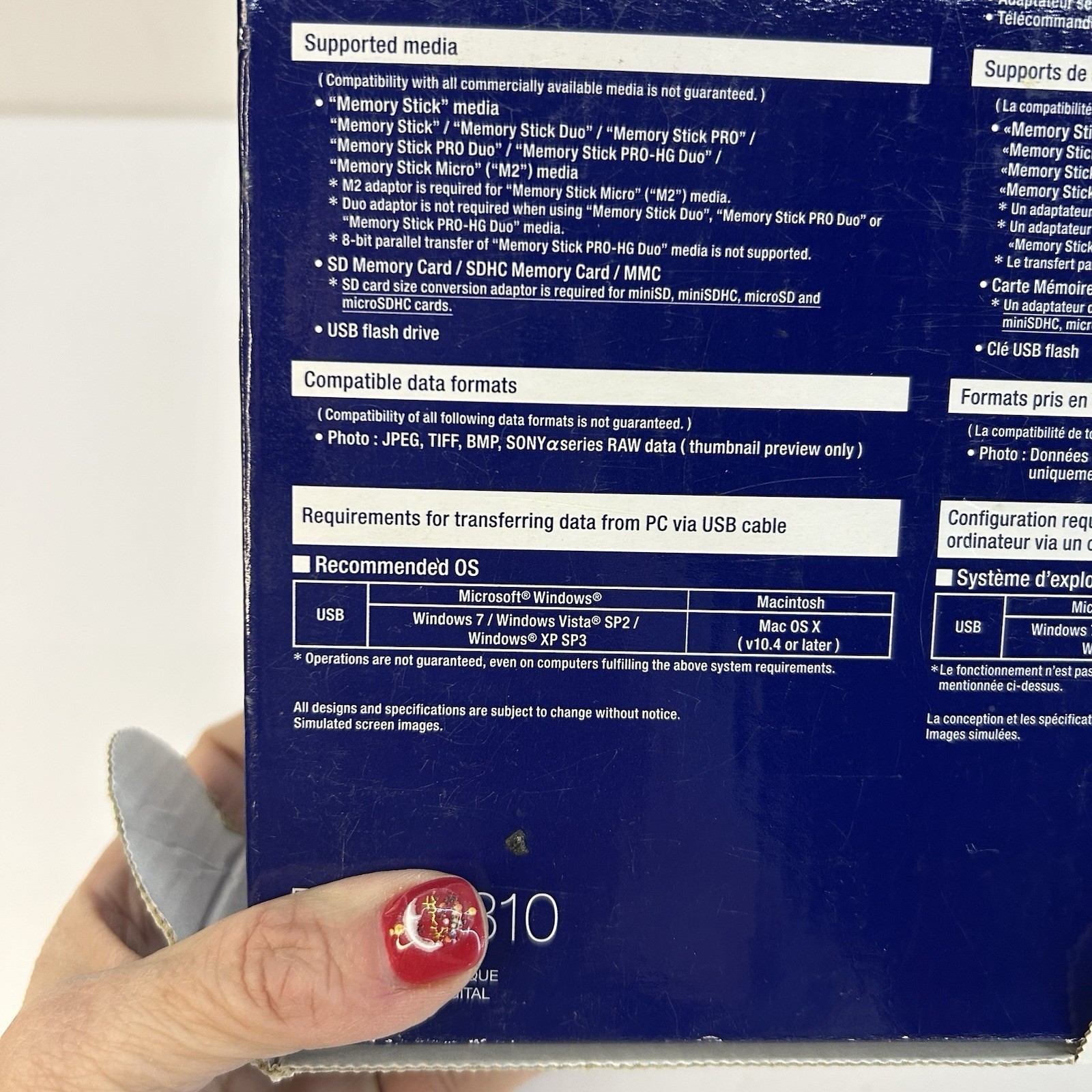 Compatible External Memory: Memory Stick Duo, Memory Stick PRO Duo, SDHC, MMC, USB Flash Drive