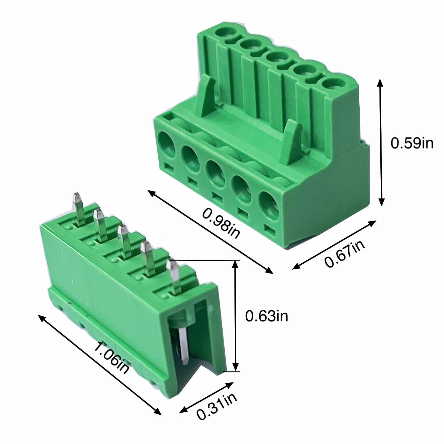 10 Set 5 Pin 5.08mm Pitch PCB Mount Screw Terminal Block Male Female Plug In
