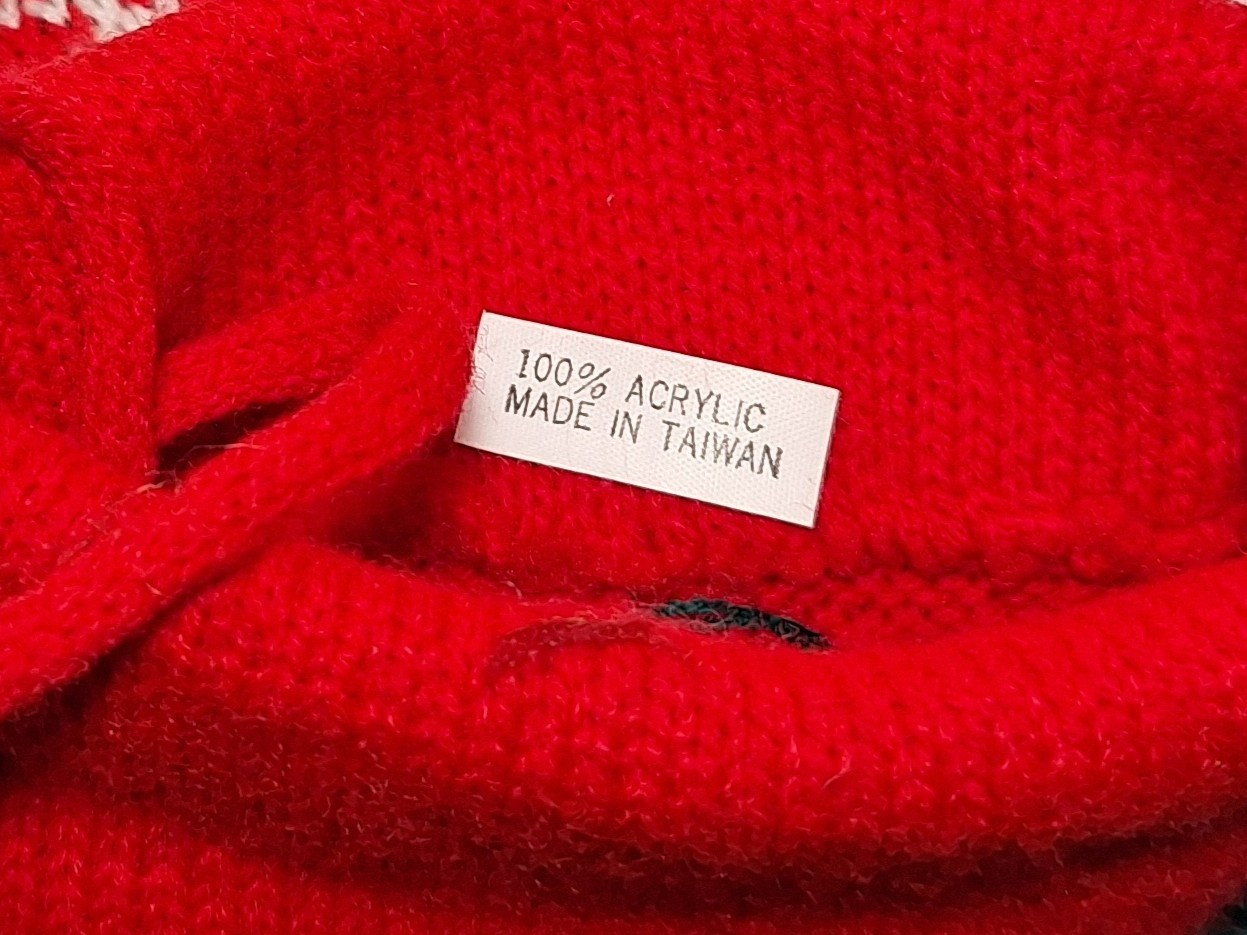как выглядит Vintage Christmas Knit Stocking Reindeer 20 Long Holiday Greeting Red Green фото