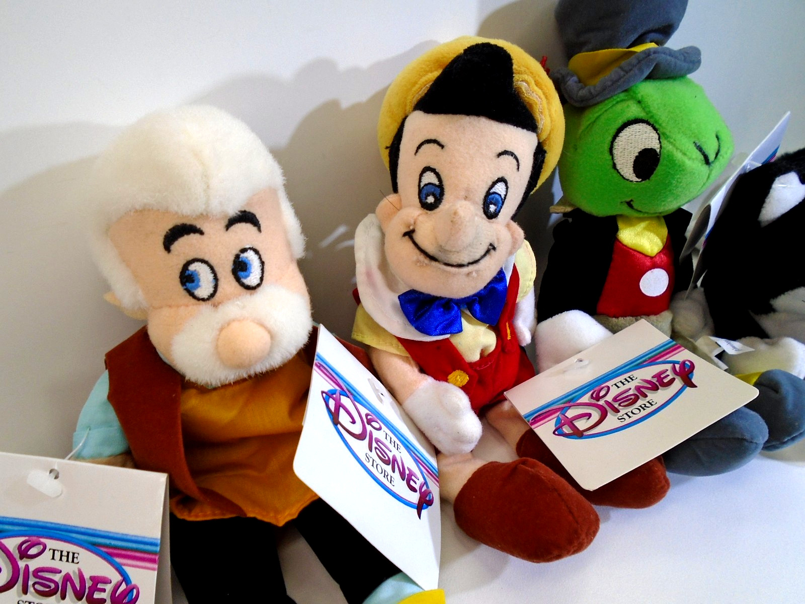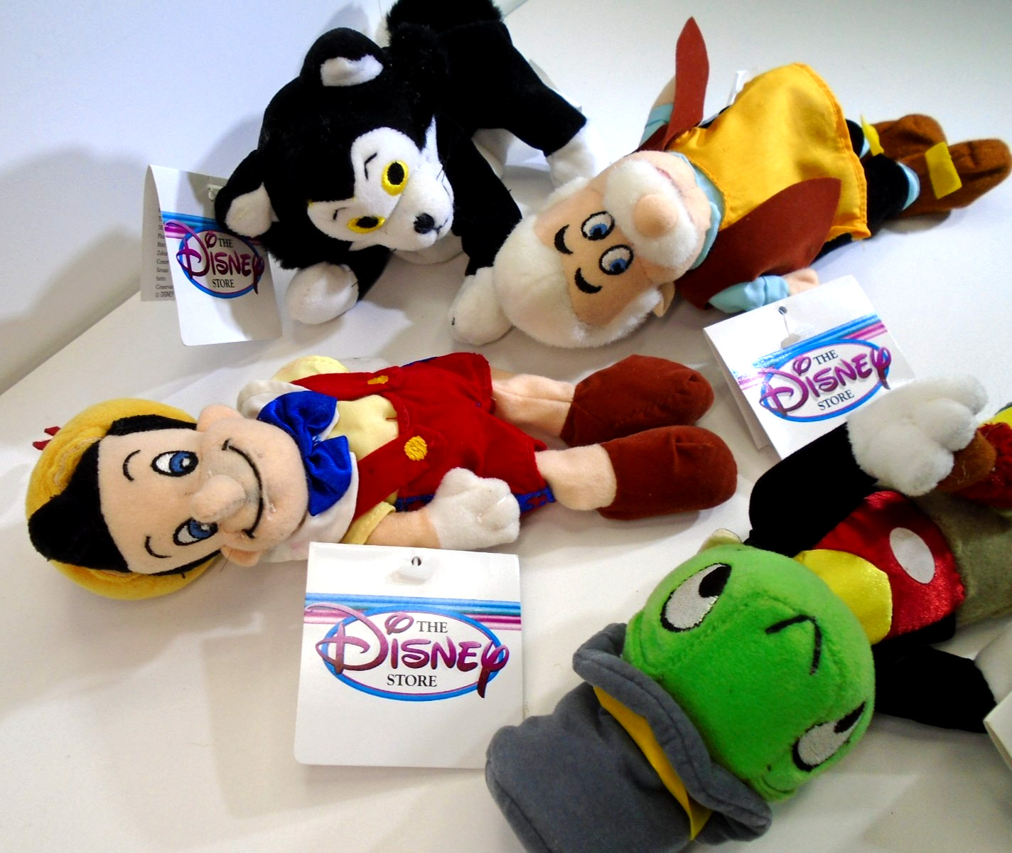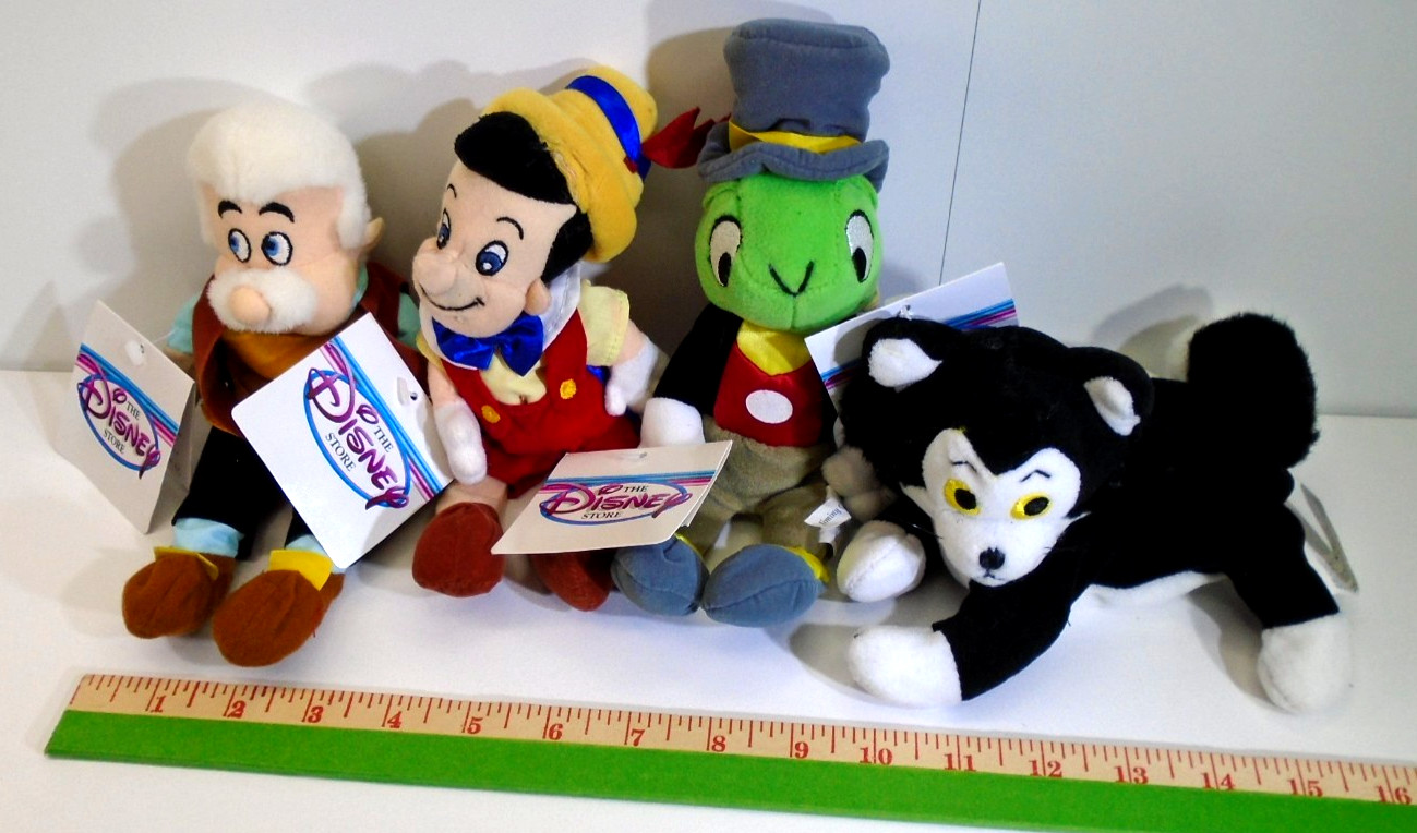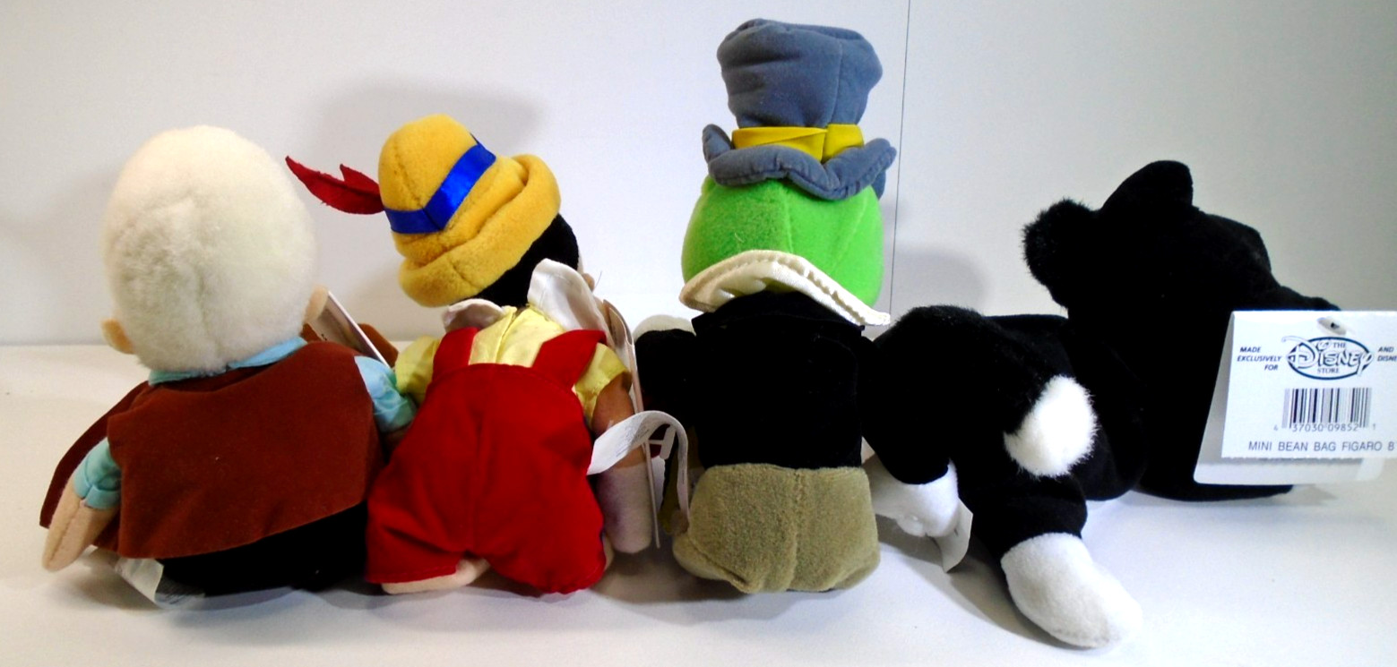 • Vtg Disney Pinocchio Beanie Plush Beanbag Set Gepetto Figaro Jiminy Cricket BN