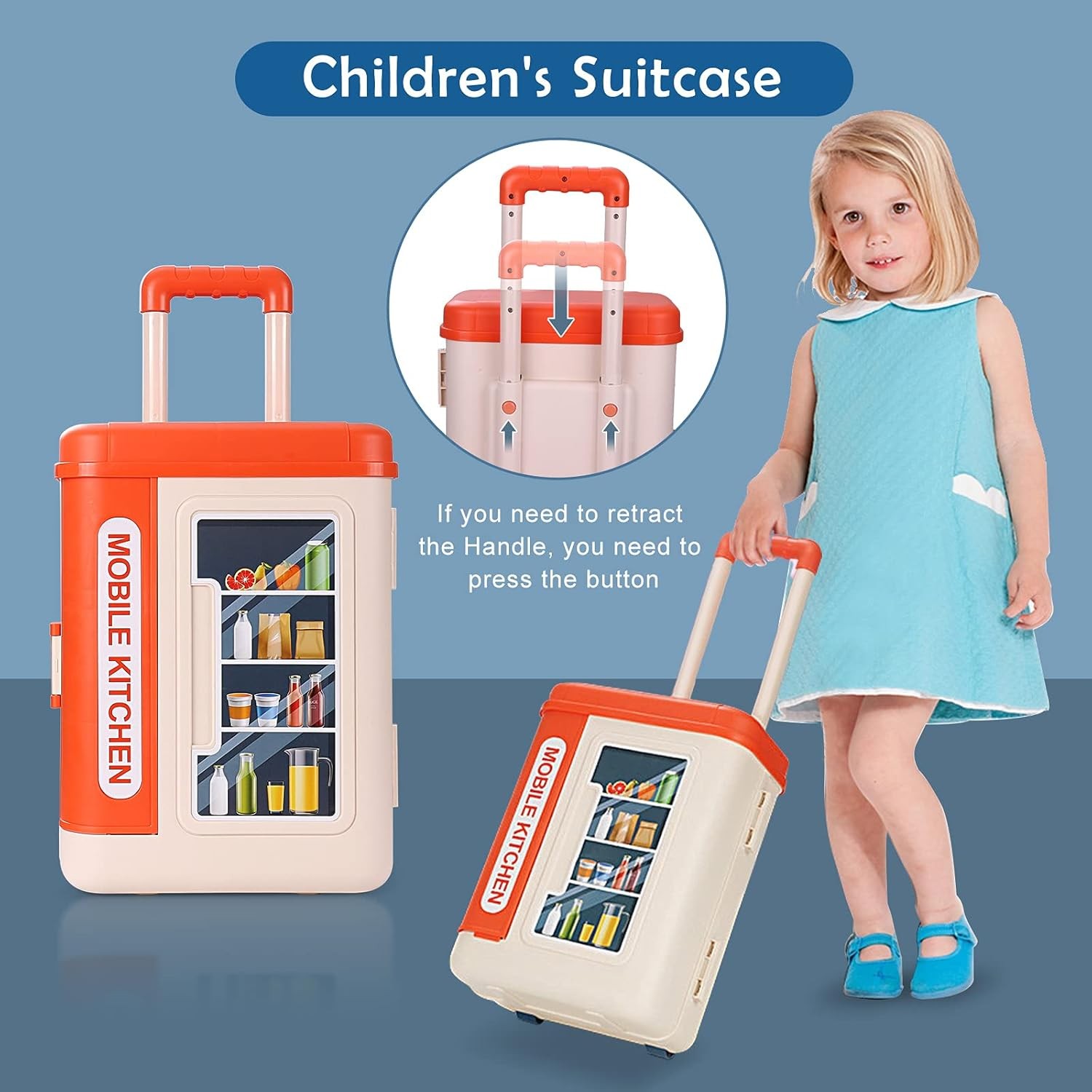 4-in-1 Mobile Kitchen Playset 41PCS Travel Luggage Cooking Toddlers Girls Boys