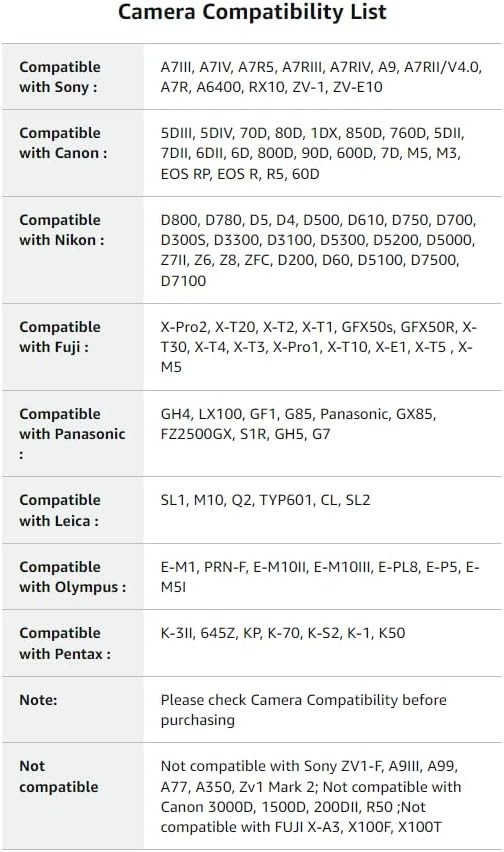 Подходит: Digital Camera, DSLR, Camcorder, Film Camera