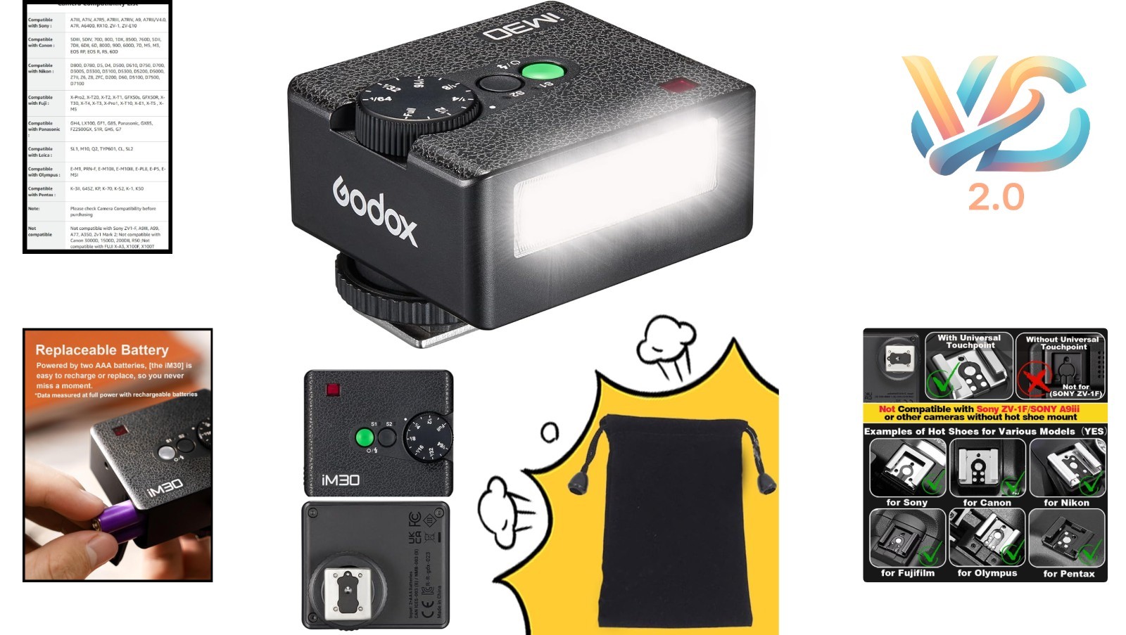 Godox IM30 Mini Camera Flash Guide GN15 7 Power Levels New