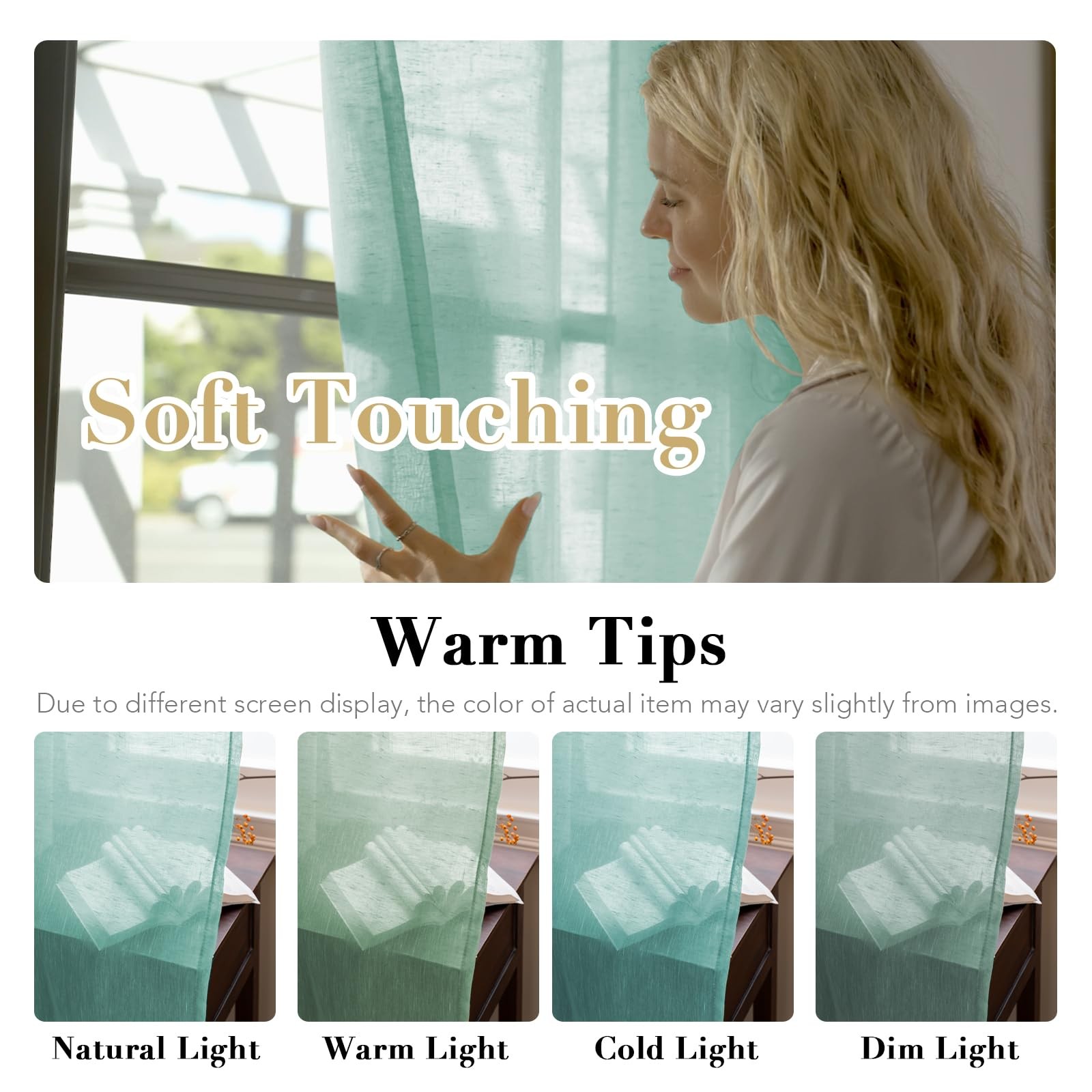 H.VERSAILTEX Linen Semi-Sheer Curtains 2 Panels 52x108 Nickel Grommet Sea Mist