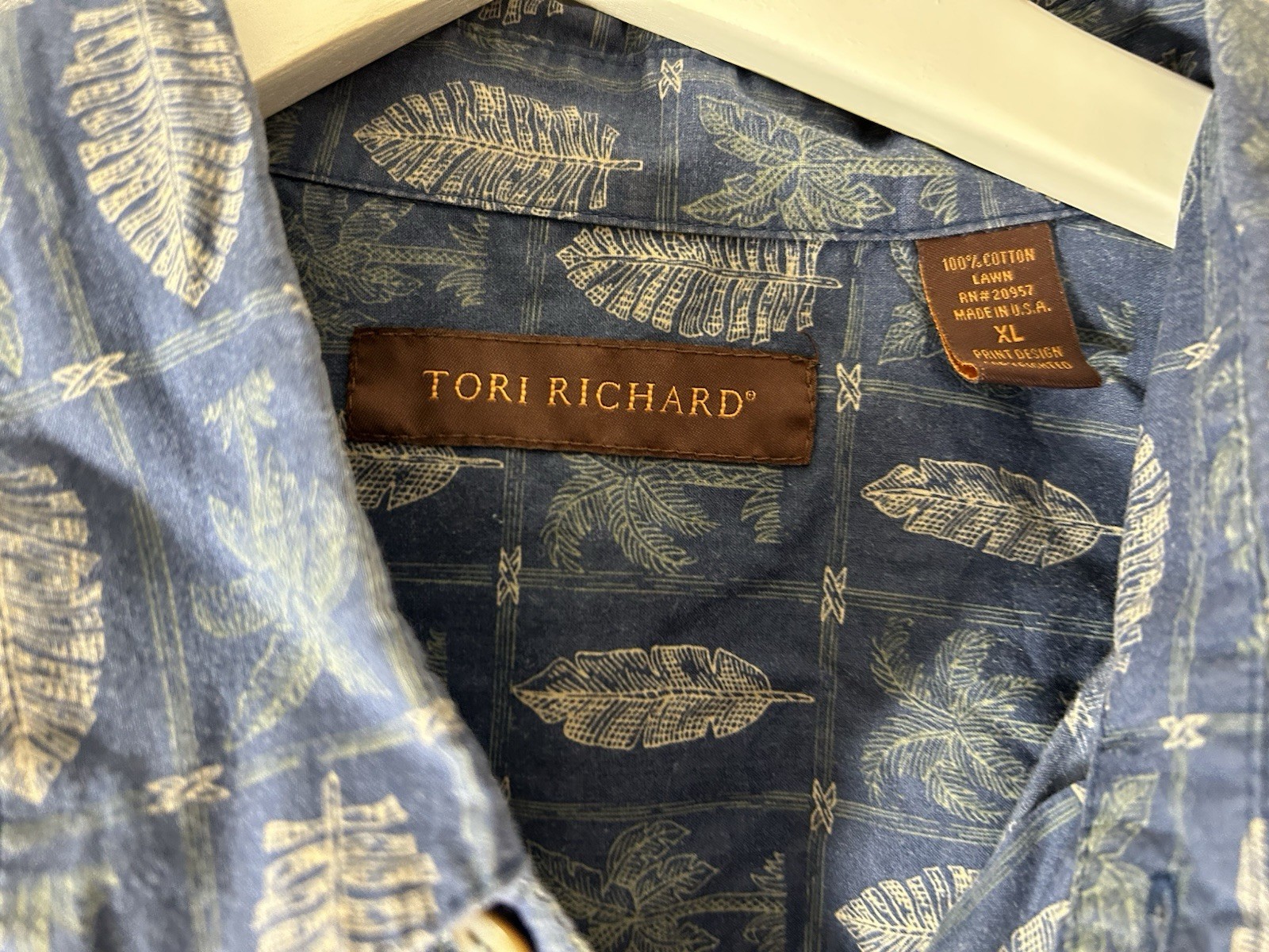 Tori Richard Hawaiian Shirt Men XL Blue Cotton Lawn Made in Hawaii Free Shipping