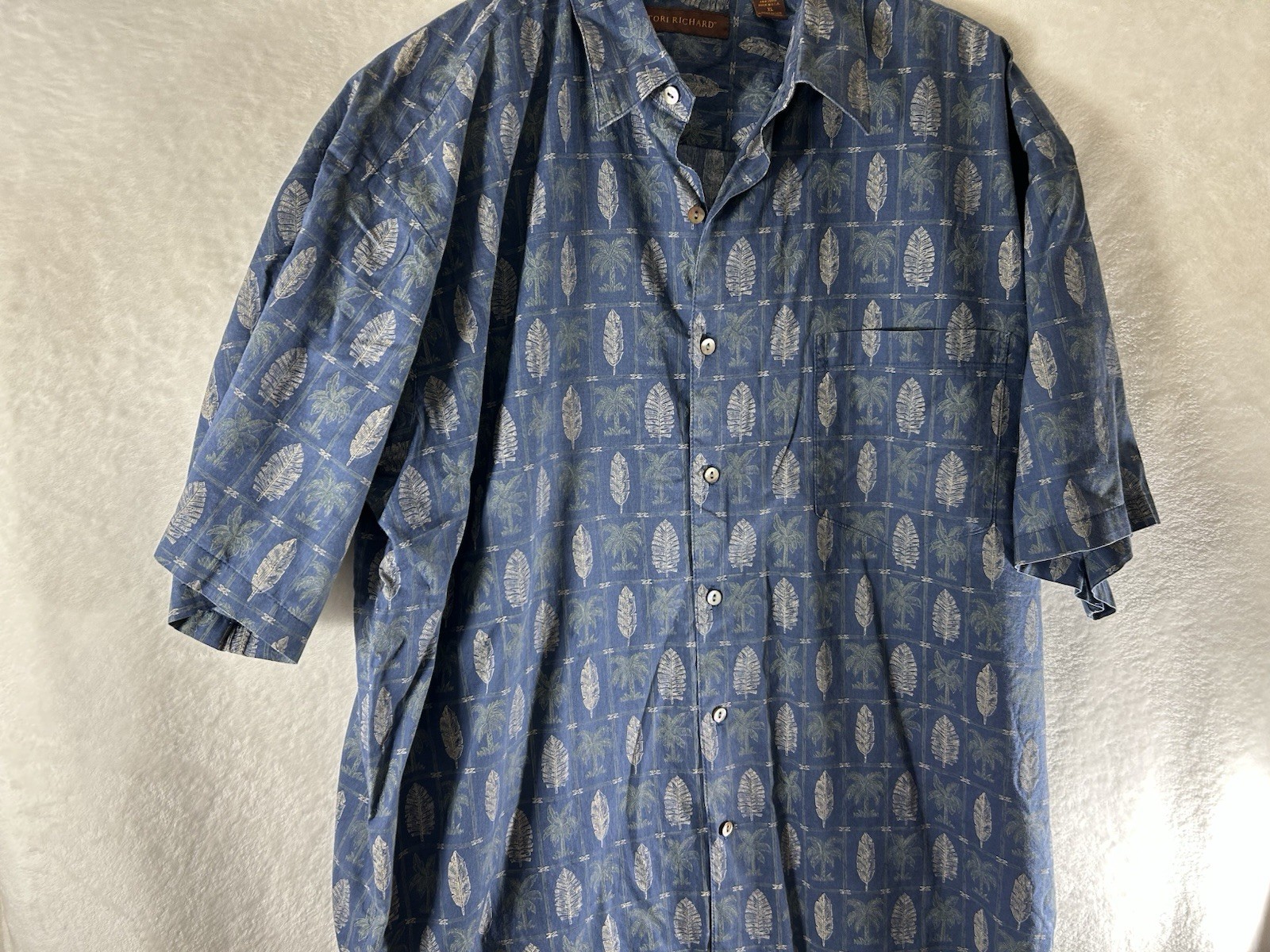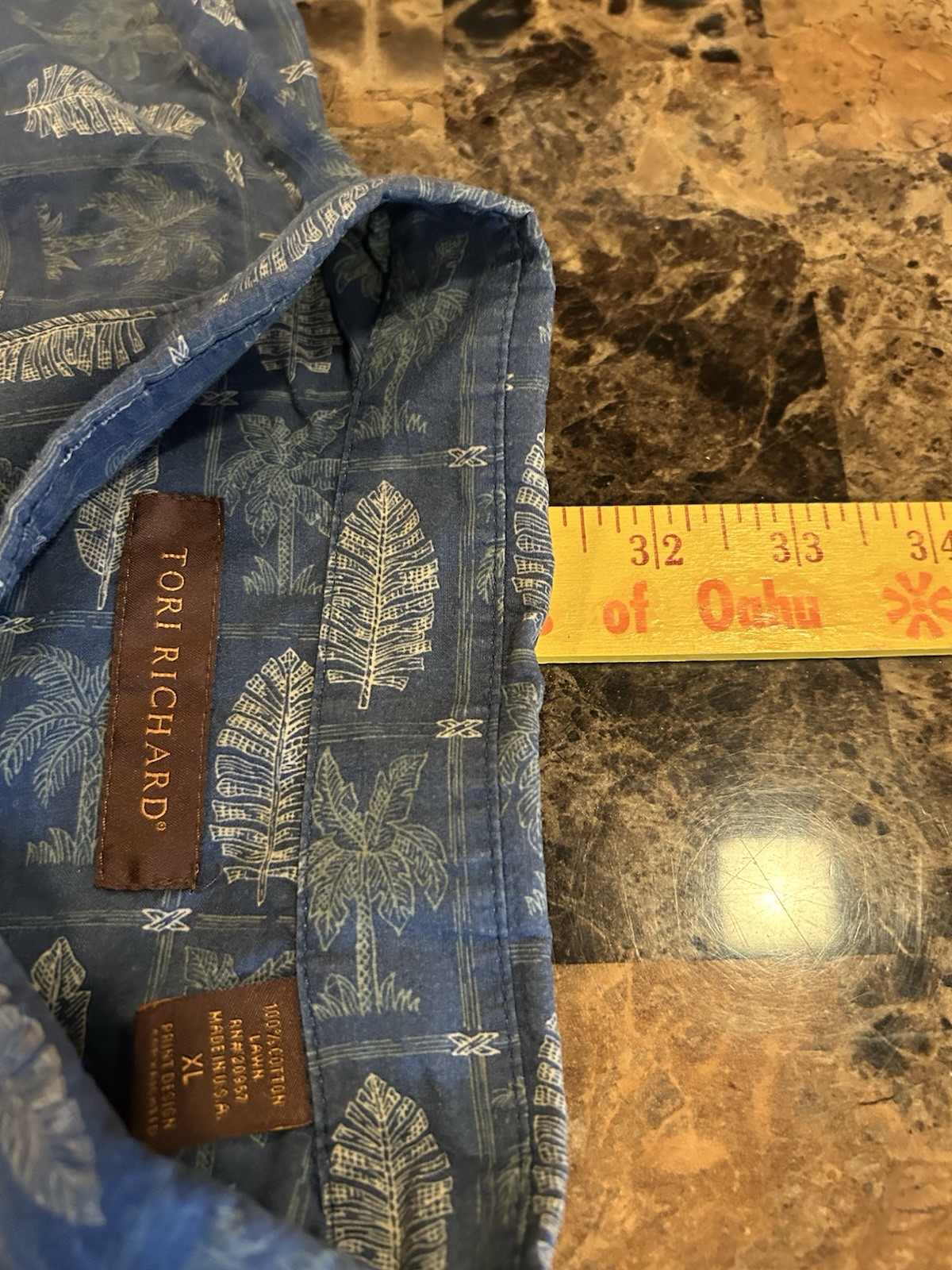 как выглядит Tori Richard Hawaiian Shirt Men XL Blue Cotton Lawn Made in Hawaii Free Shipping фото
