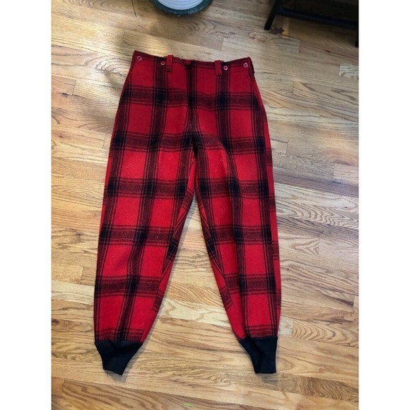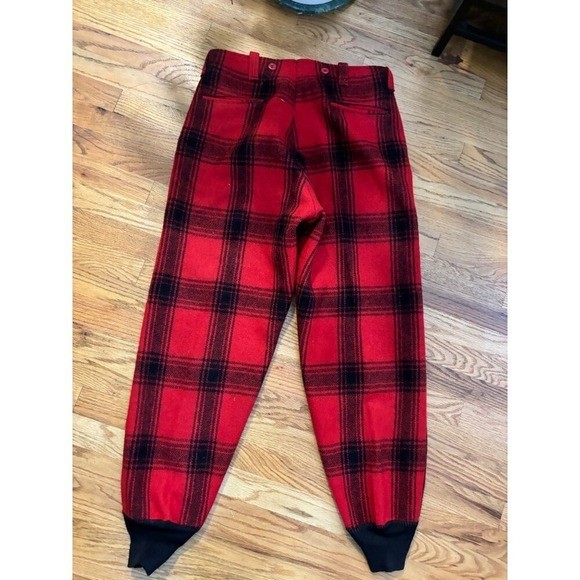 как выглядит Vintage Red Black Plaid Wool Pants High Waisted Trousers Tapered Leg Cuffs фото