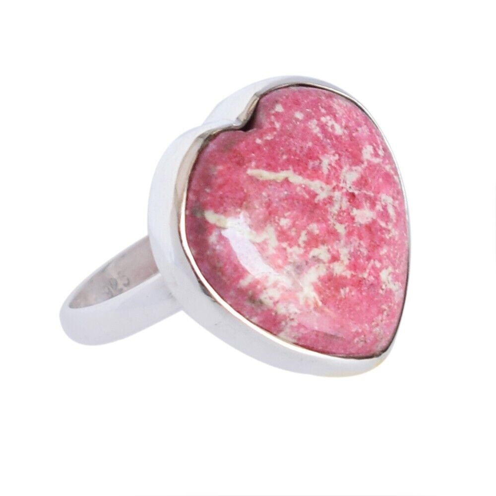 Gemstone Pink Thulite Heart Ring 925 Sterling Silver Fine Jewelry mom GIFT