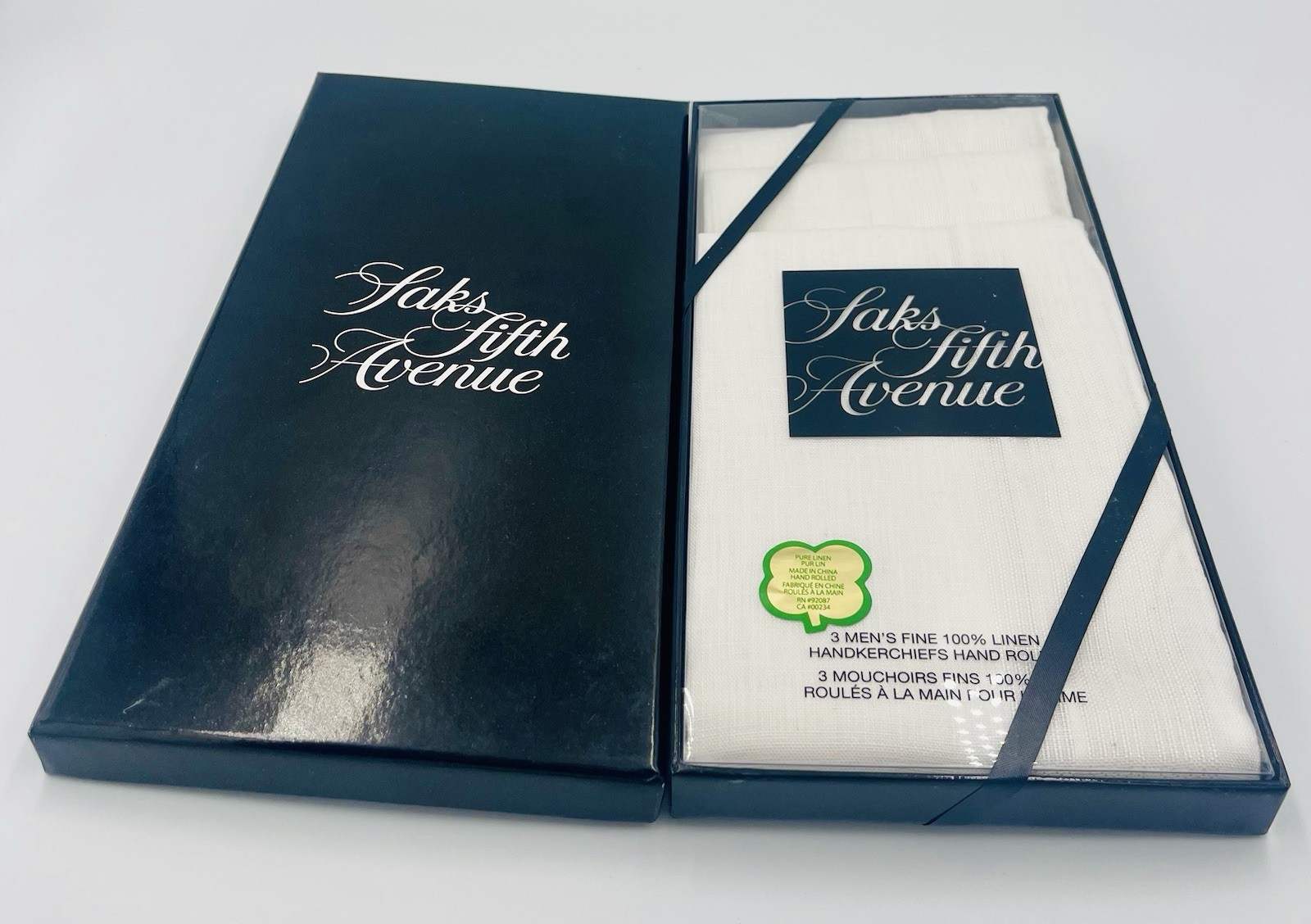 как выглядит Saks Fifth Avenue Mens 3 Pack Fine 100 Linen Handkerchiefs NIB фото
